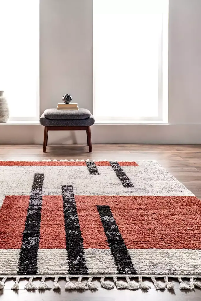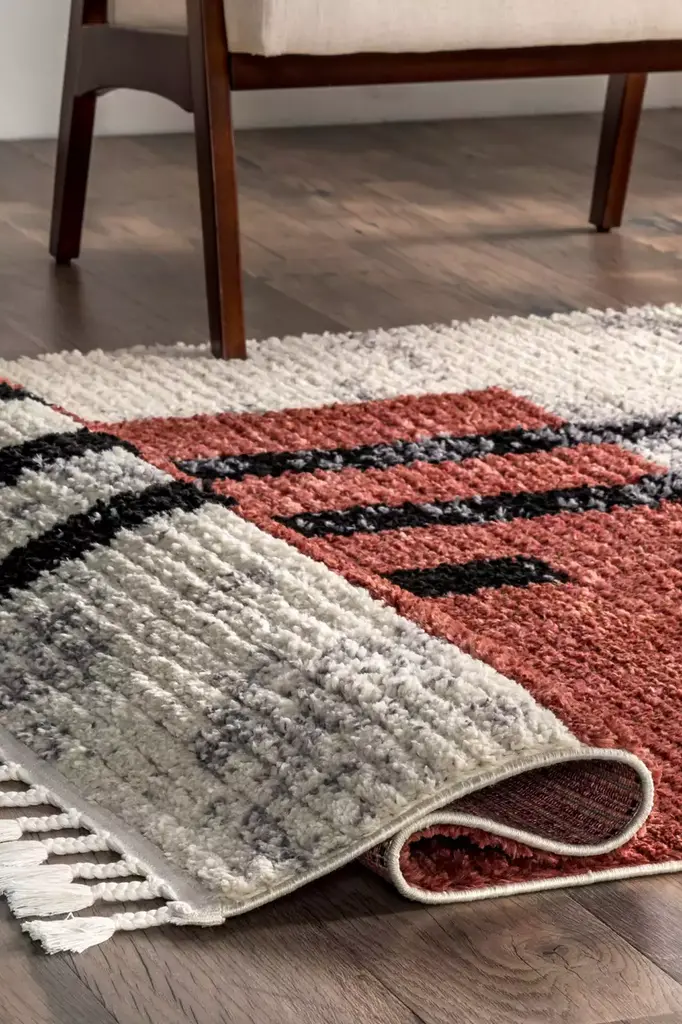Soft tufted rug with a modern design.