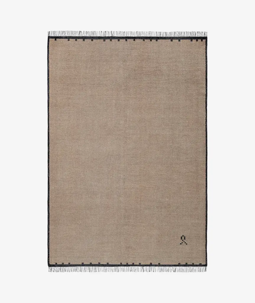 A bold and stately addition to contemporary or minimalist interiors, this rug by Mariantonia Urru is distinguished by a clean design exuding subtle sophistication. Handwoven from 90% Sardinian wool and 10% cotton following the “Aramu” technique, it is softly enhanced with small textured rhombi known as the “diamantina” and “pibiones”. Enriched with fringes, it is available in three different sizes, please ask the Concierge for details.