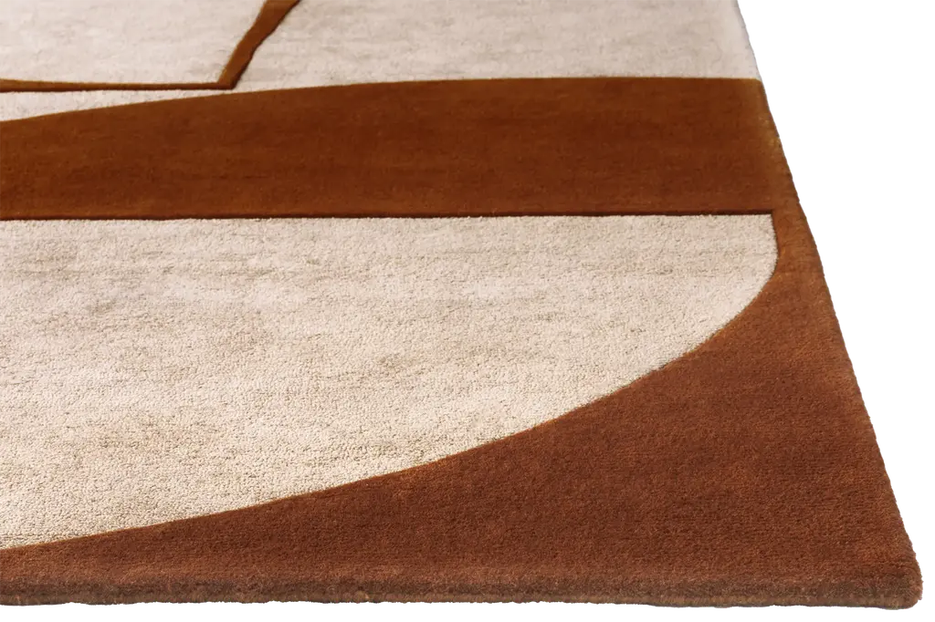 The hand-tufted wool and TENCEL™ Moments rug effortlessly combines a minimalist esthetic with modern elegance. The subtle contrast of its organic beige and dusty orange shapes will add color, character and texture to your living space.