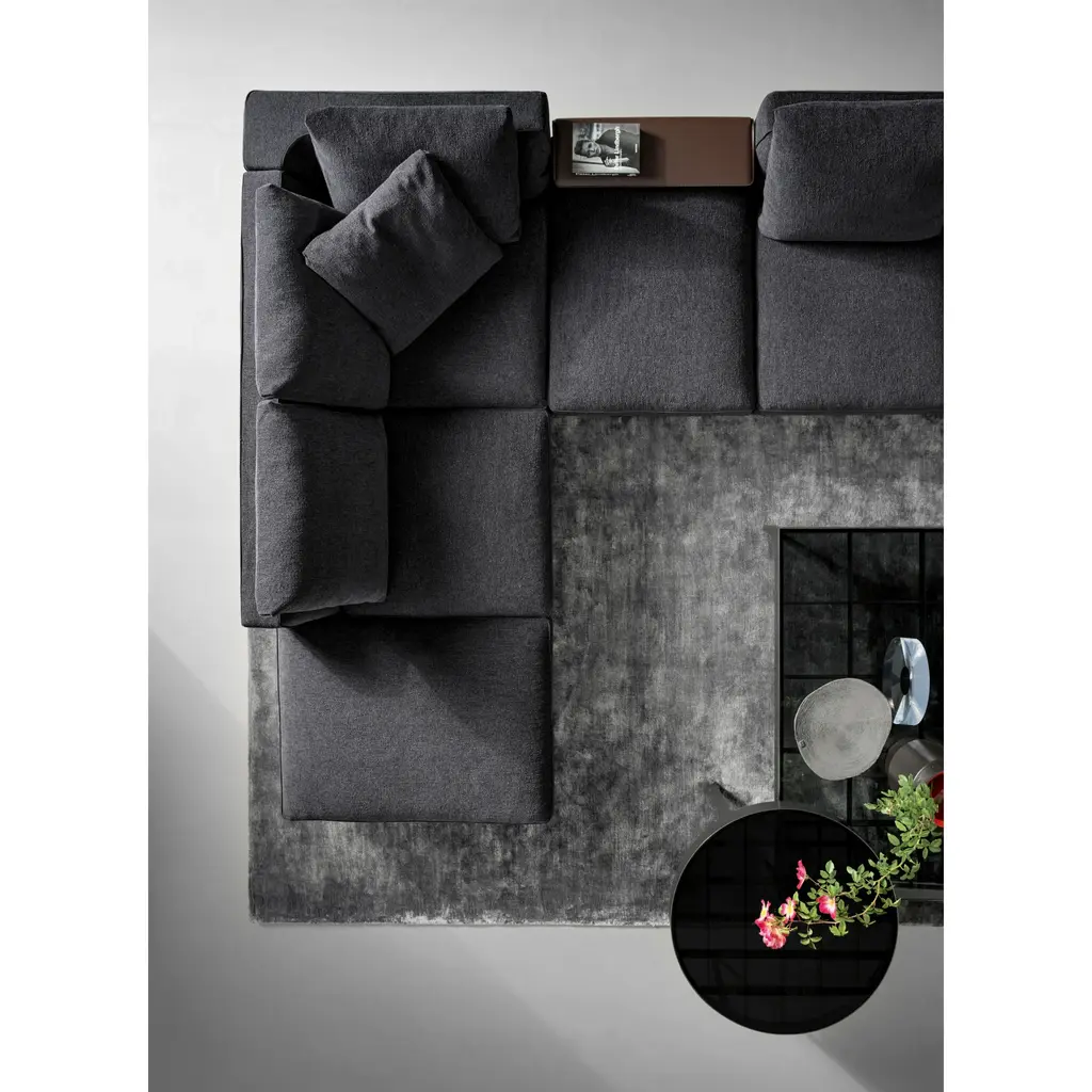 Casablanca is a rug with a soft and velvety surface, thanks to its composition of tencel and cotton. Tencel is a fiber obtained from the cellulose of eucalyptus and beech, natural raw materials that give the fabric elasticity and a silk-like sheen, as well as being environmentally friendly and completely recyclable. Casablanca is available in four monochrome versions: Essential Taupe, Iced Moon, Moon Eclipse and Pink Sand, rectangular or round, to fit any context and thus create refined and modern environments with a design which evokes a timeless appeal.