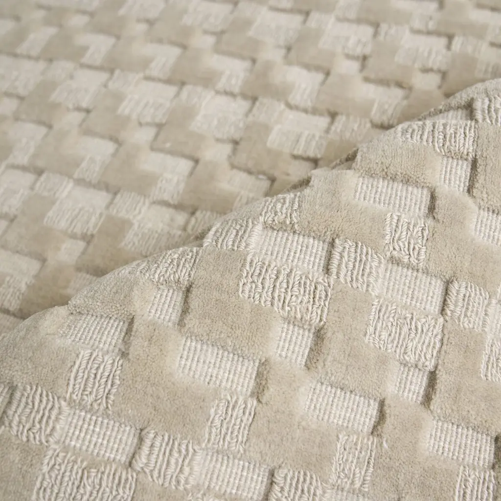This quietly luxurious rug is handcrafted of New Zealand wool, prized for its softness and durability. Its high-low geometric motif gives it a sense of depth and movement that makes it a welcome addition to just about any room. A rug pad is recommended to help prevent slipping.