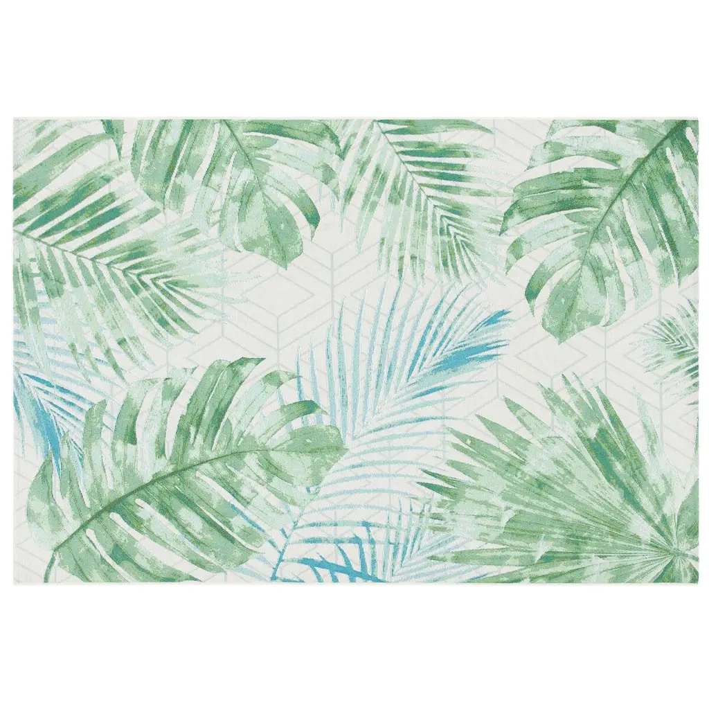 Add a touch of greenery to your home interior with Monstera Jade Rug. Hand-drawn layers of sage green and teal blue leaves criss-cross on a light background, creating a rainforest-like feel that's at once calming and mesmerizing.