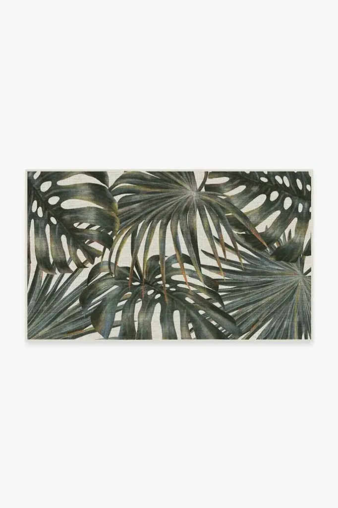 Add a touch of greenery to your home interior with Monstera Jade Rug. Hand-drawn layers of sage green and teal blue leaves criss-cross on a light background, creating a rainforest-like feel that's at once calming and mesmerizing.
