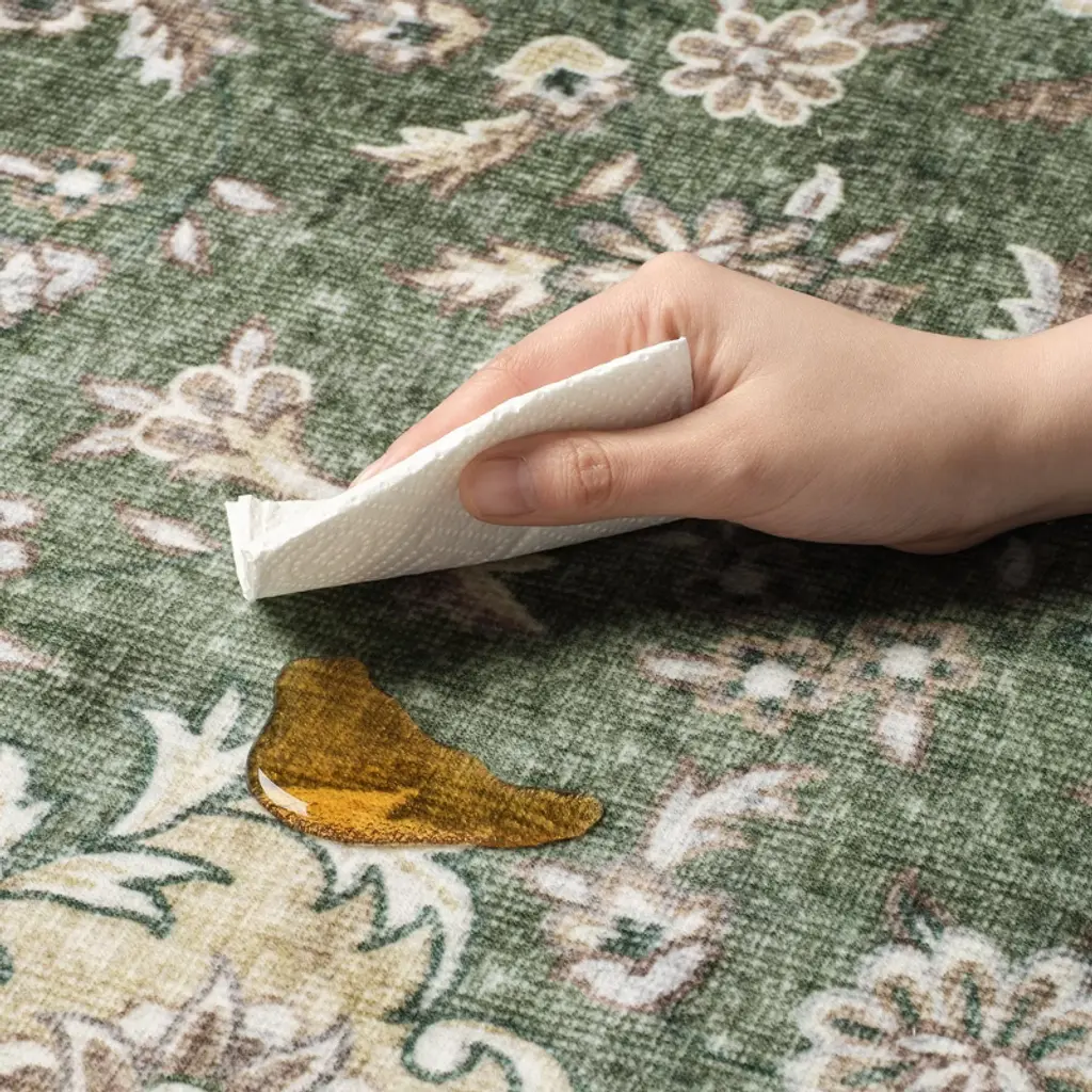 Montvoo Forest Green Floral Washable Area Rug 10'x14'