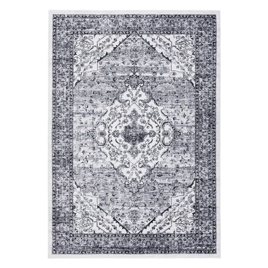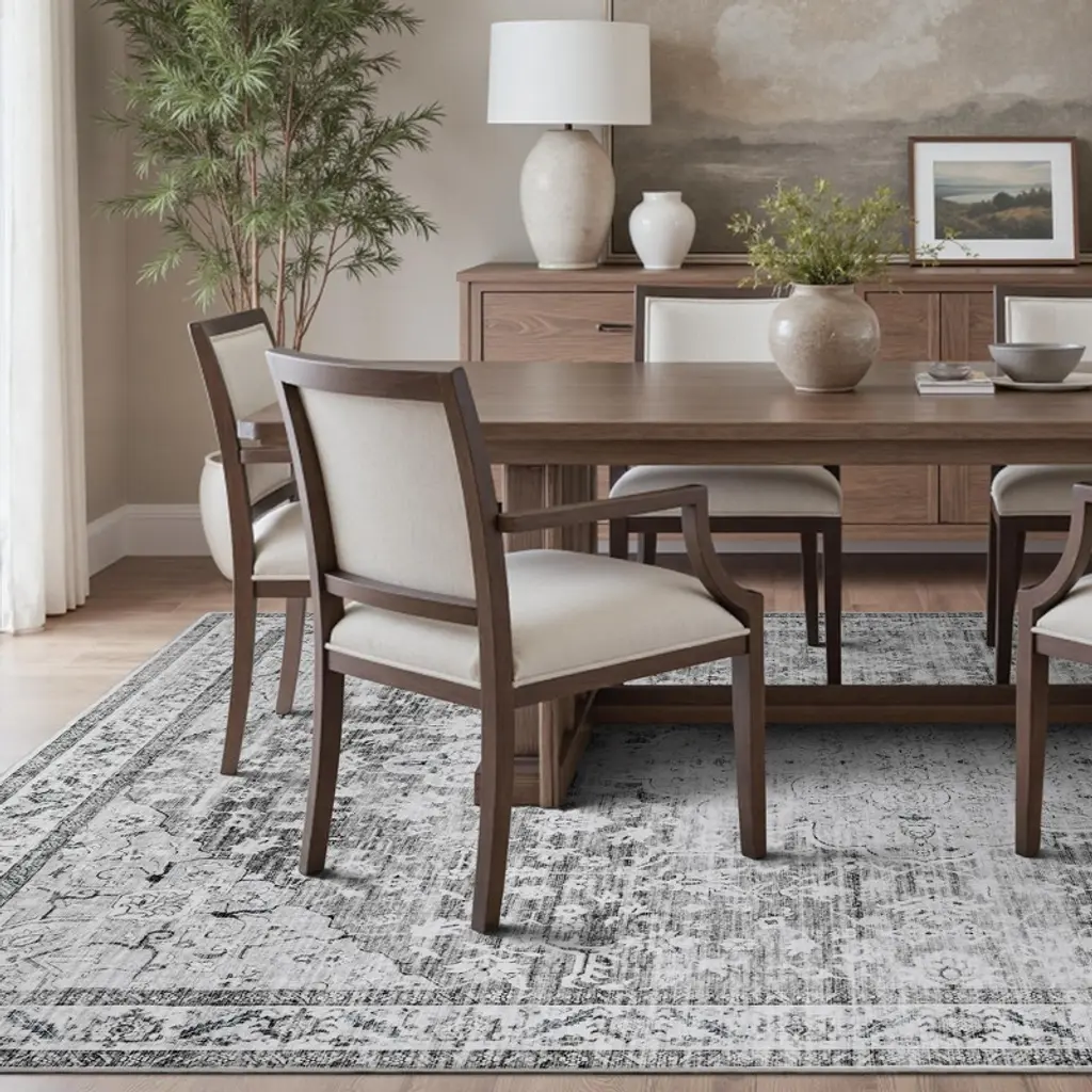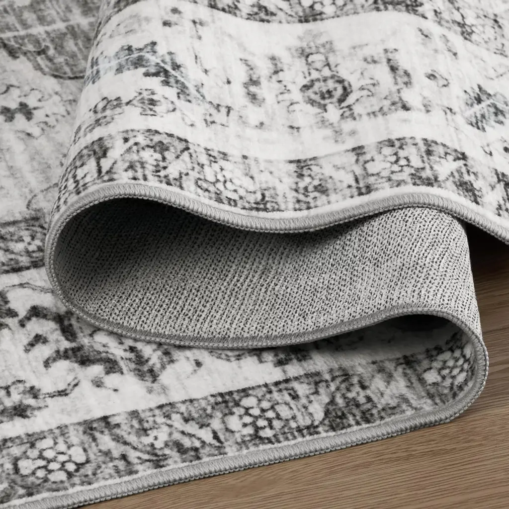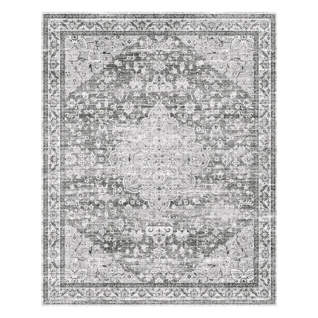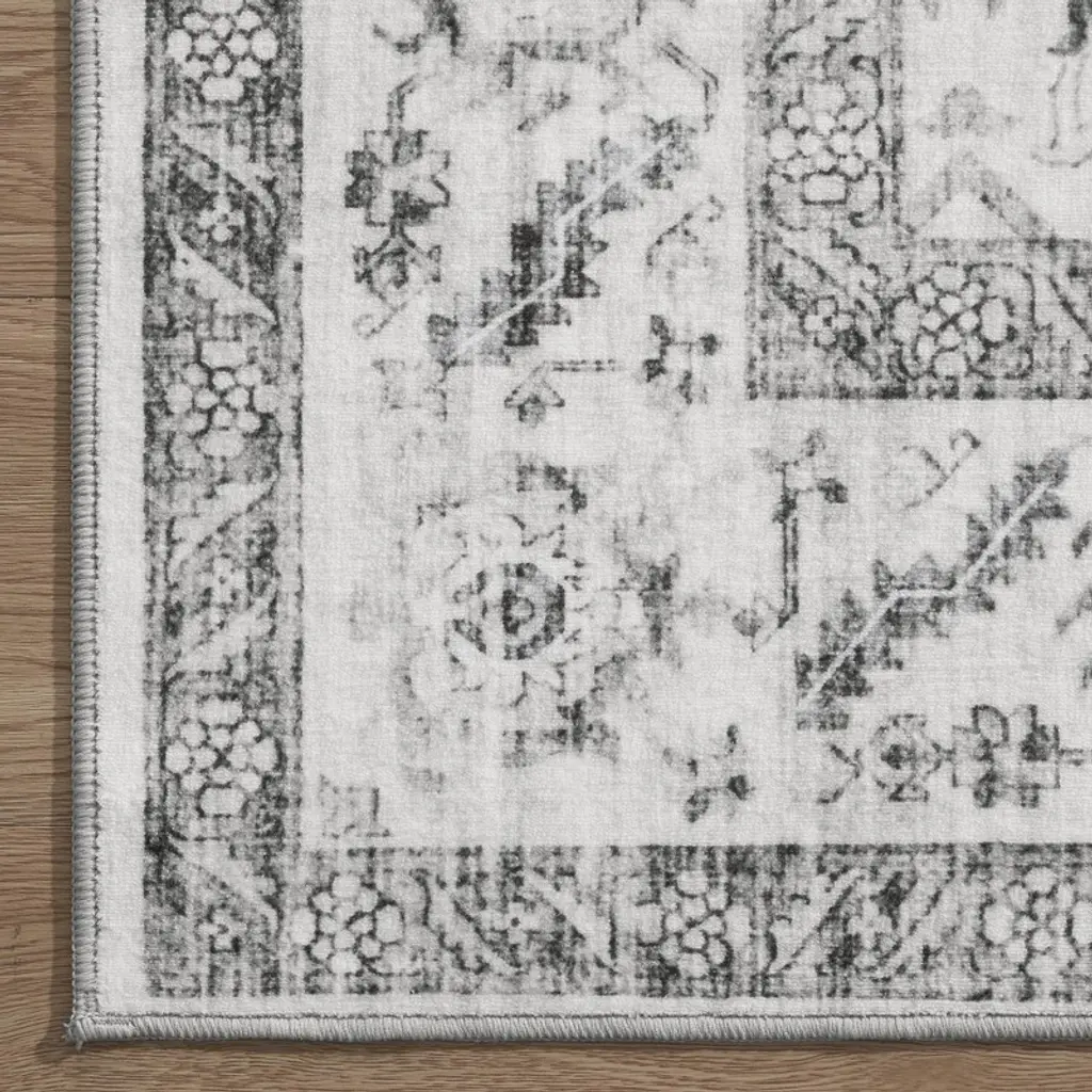 Montvoo Gray Medallion Floral Washable Rug 5'x7'