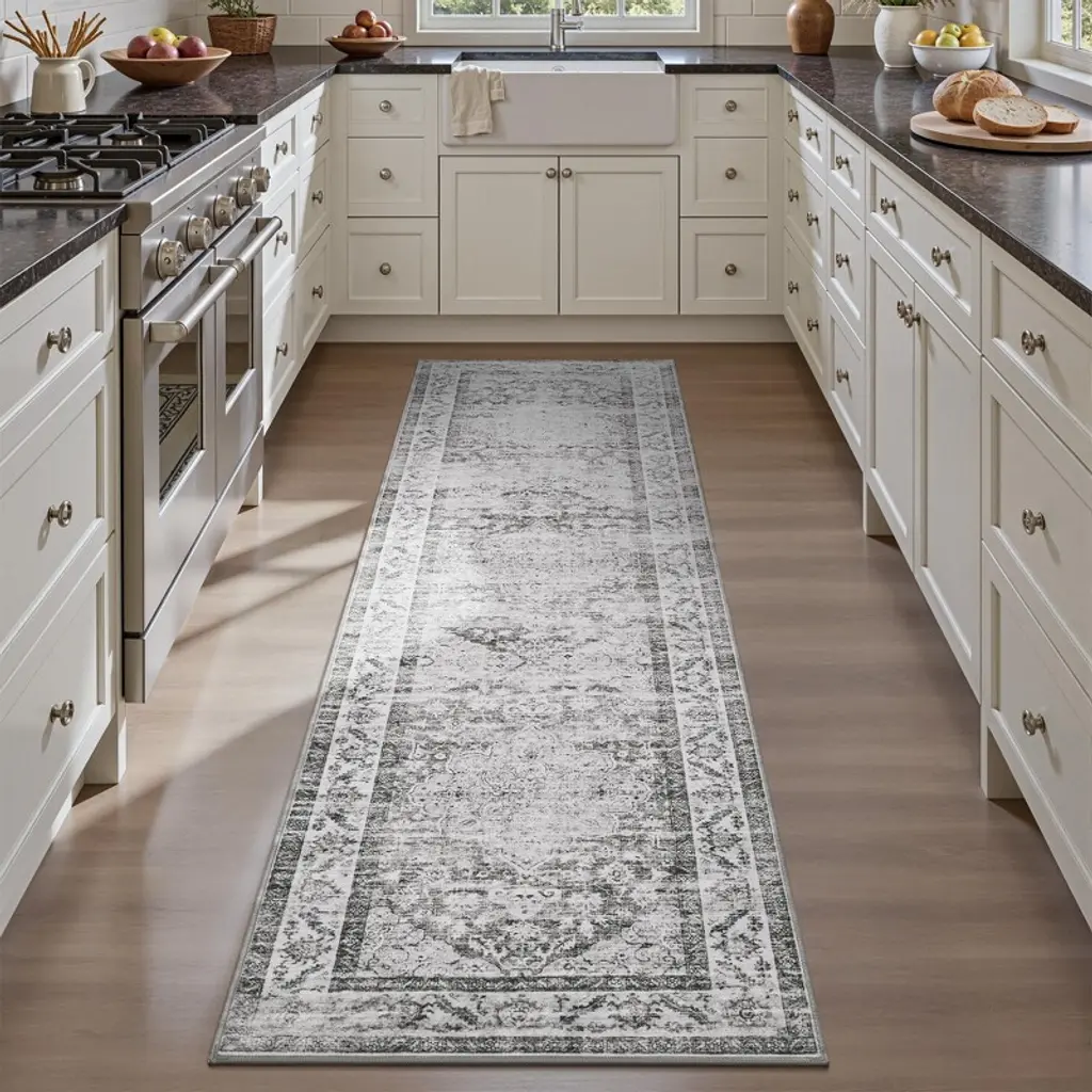 Featuring graceful floral details in a warm taupe hue, this rug adds a touch of vintage charm to any room. Its soft texture makes it comfortable underfoot, while the non-slip backing keeps it securely in place. Washable and low-maintenance, it’s a family-friendly choice designed to handle everyday life with kids and pets.
