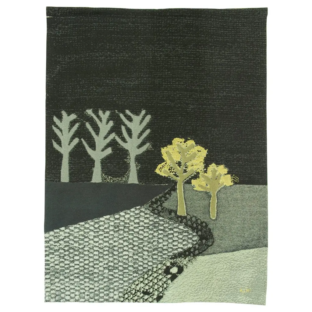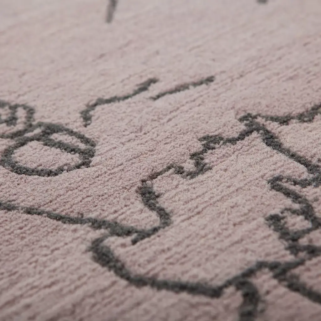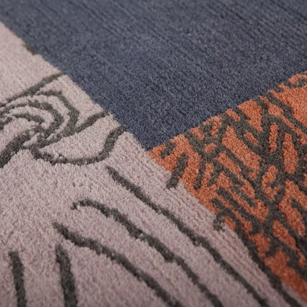 This intriguing rug designed by Luca Nichetto in 2013 is a playful and refreshing take on traditional rugs. Evoking the whimsical works of modern artist Paul Klee, this rectangular rug is dominated by seemingly sketched-out scenes from everyday life, the graphic and carefree quality of the drawings giving the rug a romantic allure. Set on a white background, the rug boasts two color blocks in orange and blue along the bottom edge, adding a touch of color to this versatile accent piece. Entirely hand-knotted in Nepal, this wool rug features 120 knots per inch with 6mm-high pile.