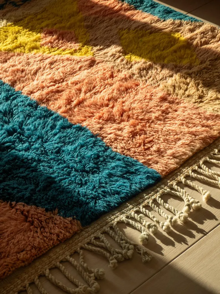 We exclusively create custom individual rugs for you. This means that we do not produce unnecessary items and we prioritize respecting nature. That's why we estimate it will take us around 8-9 weeks to create your rug.Beni Mrirt rugs are made of 100% soft and tender highest quality sheep wool, which is carefully gathered and taken care of. The Beni Mrirt rugs are considered to be the diamond of the Moroccan carpets collections well-deserved due to their superior quality. At first glance, Beni Mrirt and Beni Ourain look similar, but there is still a significant difference between them. The Beni Mrirt rug knot-tying technique varies by its fine weaving which is done more tightly. Ornaments and color palettes are different too. Except for widely used geometrical prints, carpets can be decorated with abstract compositions and the traditional Berber symbols of different colors: from black and brown to indigo and ochre.