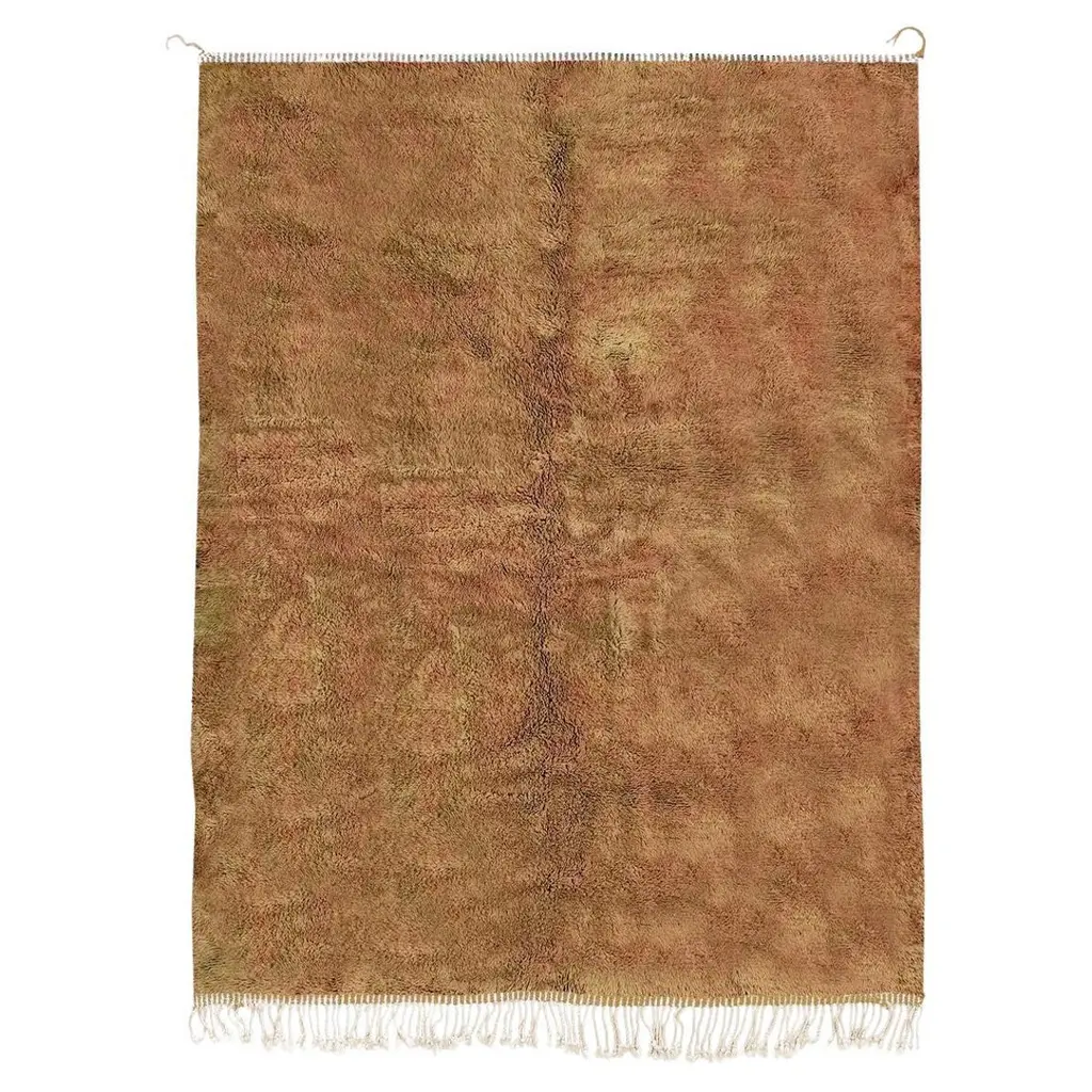Moroccan Beni Mrirt Rug 4’x6’, Solid Terracotta Brown Plush Rug, Custom-Made