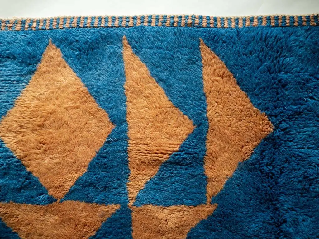 Moroccan Beni Mrirt Rug 5’x7’, Blue Color Triangle Pattern Rug, Custom-Made
