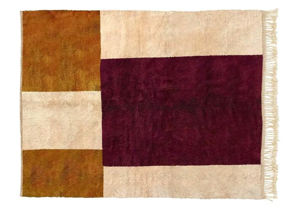We will weave this rug in any size for you. Just let us know what size you need.We exclusively create custom individual rugs for you. This means that we do not produce unnecessary items and we prioritize respecting nature. That's why we estimate it will take us around 8-9 weeks to create your rug.Beni Mrirt rugs are made of 100% soft and tender highest quality sheep wool, which is carefully gathered and taken care of. The Beni Mrirt rugs are considered to be the diamond of the Moroccan carpets collections well-deserved due to their superior quality. At first glance, Beni Mrirt and Beni Ourain look similar, but there is still a significant difference between them. The Beni Mrirt rug knot-tying technique varies by its fine weaving which is done more tightly. Ornaments and color palettes are different too. Except for widely used geometrical prints, carpets can be decorated with abstract compositions and the traditional Berber symbols of different colors: from black and brown to indigo and ochre.