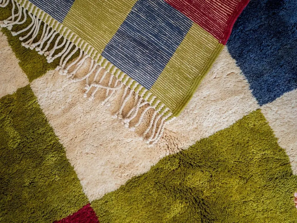 Beni Mrirt rugs are made of 100% soft and tender highest quality sheep wool, which is carefully gathered and taken care of. The Beni Mrirt rugs are considered to be the diamond of the Moroccan carpets collections well-deserved due to their superior quality. At first glance, Beni Mrirt and Beni Ourain look similar, but there is still a significant difference between them. The Beni Mrirt rug knot-tying technique varies by its fine weaving which is done more tightly. Ornaments and color palettes are different too. Except for widely used geometrical prints, carpets can be decorated with abstract compositions and the traditional Berber symbols of different colors: from black and brown to indigo and ochre.