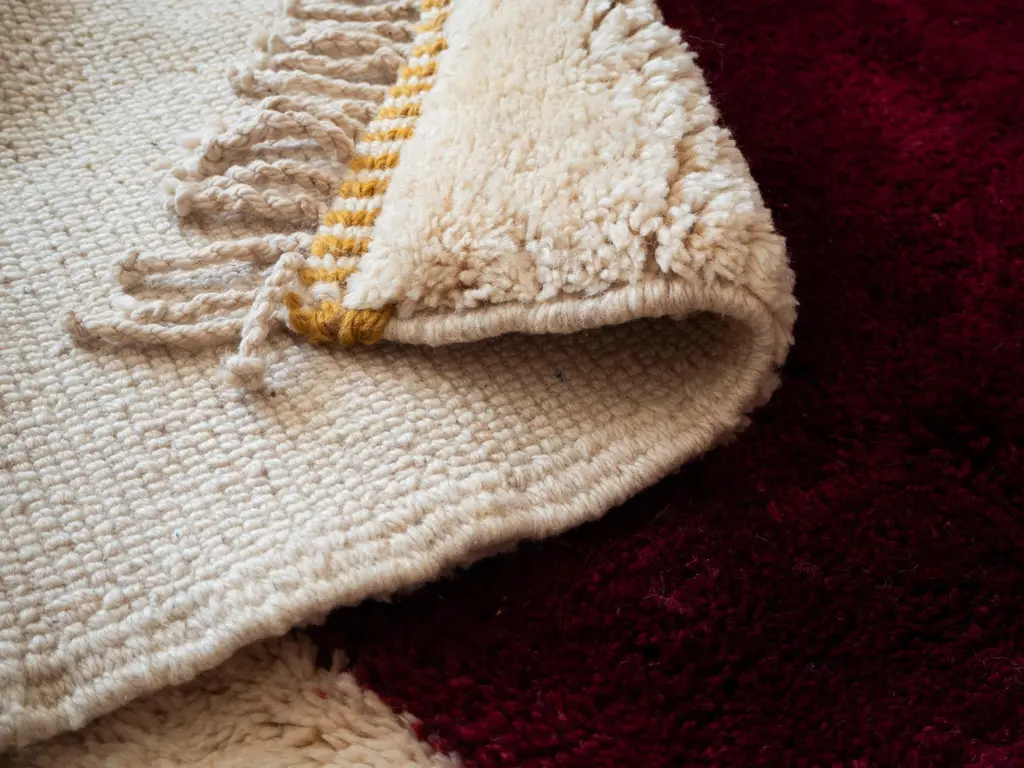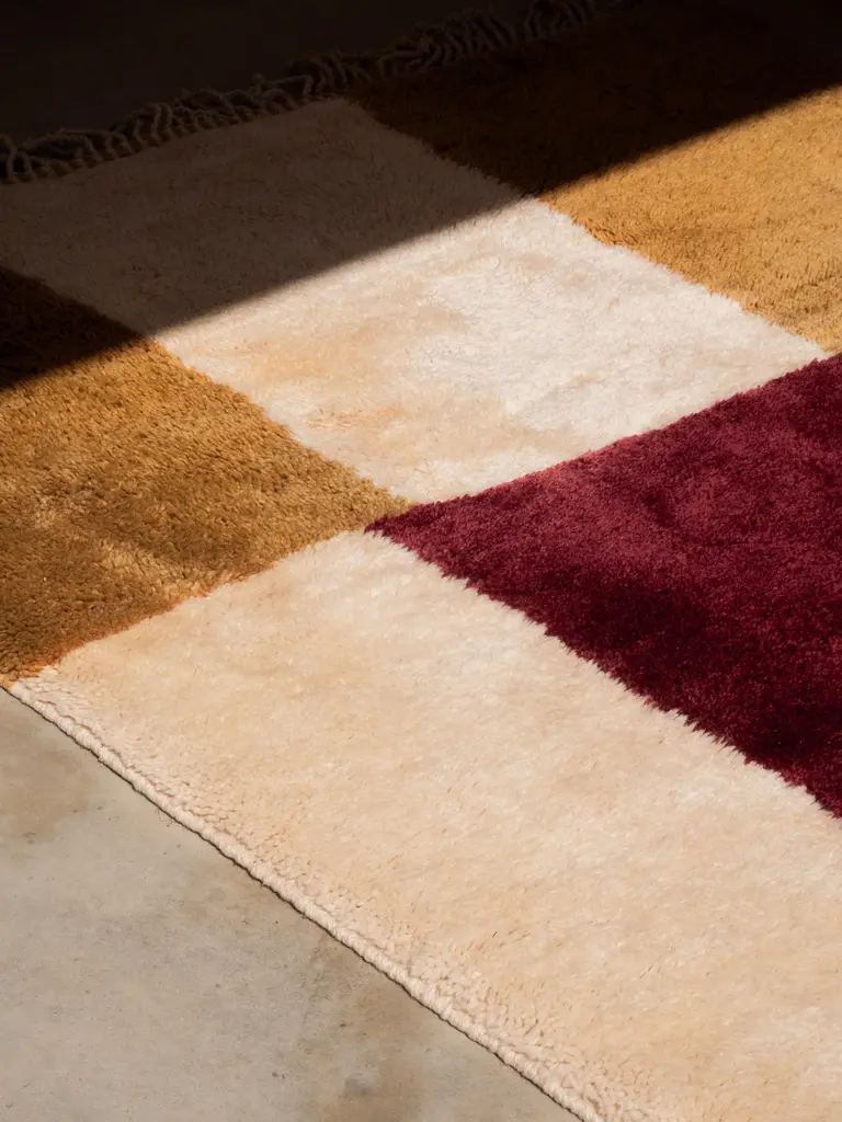 We will weave this rug in any size for you. Just let us know what size you need.We exclusively create custom individual rugs for you. This means that we do not produce unnecessary items and we prioritize respecting nature. That's why we estimate it will take us around 8-9 weeks to create your rug.Beni Mrirt rugs are made of 100% soft and tender highest quality sheep wool, which is carefully gathered and taken care of. The Beni Mrirt rugs are considered to be the diamond of the Moroccan carpets collections well-deserved due to their superior quality. At first glance, Beni Mrirt and Beni Ourain look similar, but there is still a significant difference between them. The Beni Mrirt rug knot-tying technique varies by its fine weaving which is done more tightly. Ornaments and color palettes are different too. Except for widely used geometrical prints, carpets can be decorated with abstract compositions and the traditional Berber symbols of different colors: from black and brown to indigo and ochre.