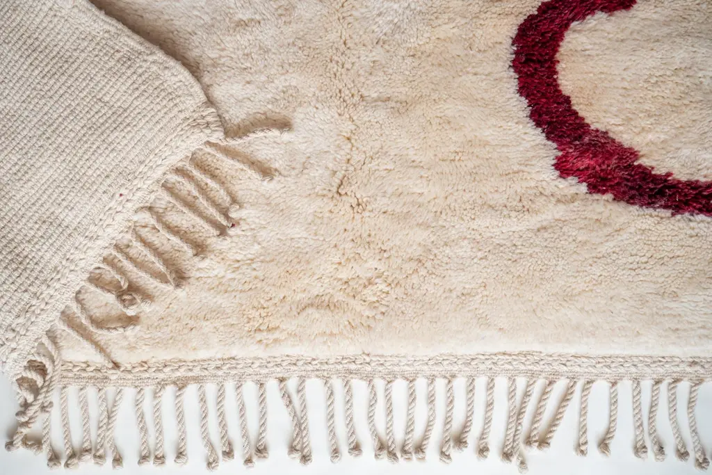 Moroccan Beni Mrirt Rug 6’x9’, White Color Red Line Pattern Rug, Custom-Made