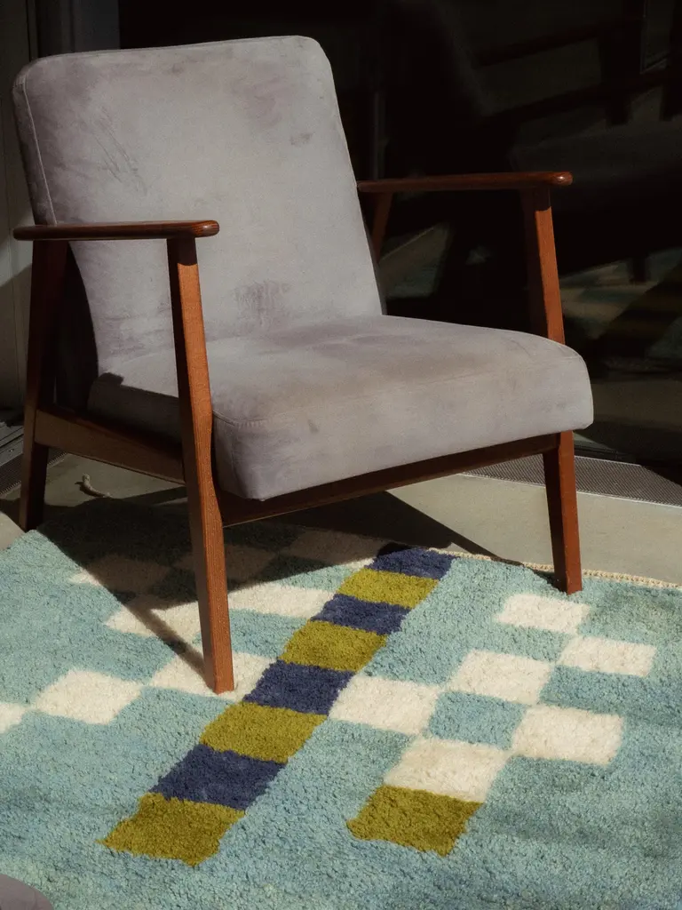 Moroccan Checkered Pattern Rug 4'x6', Modern Blue Color Mrirt Rug, Custom-Made