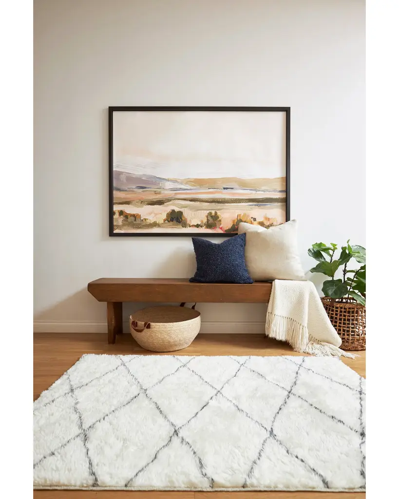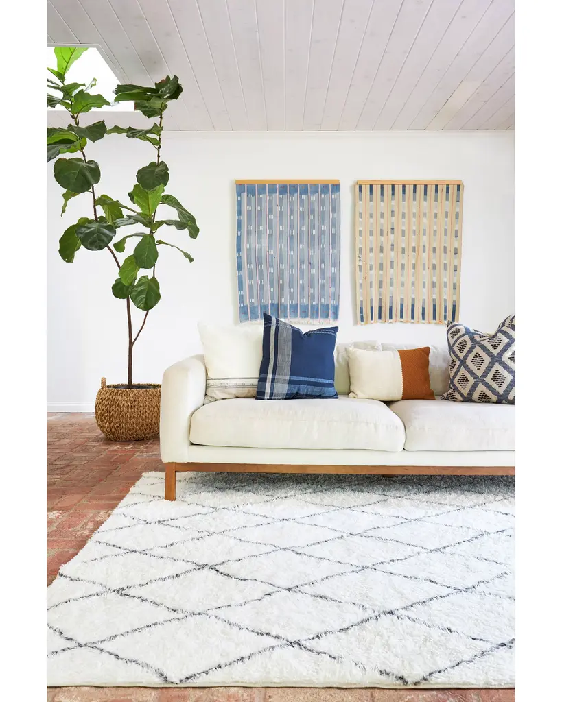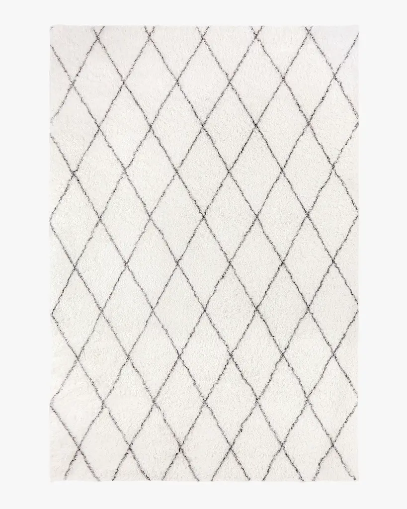 Sophisticated style meets washable softness. Made with long, velvety fibers, our Moroccan Diamond Plush Rug is inspired by the textures and weaving techniques of Moroccan Berber rugs and features a black diamond pattern on a creamy off-white background. Water-resistant, stain-resistant, and machine-washable.