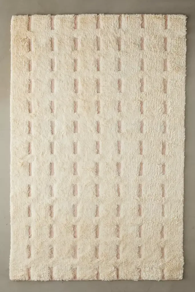 We're making waves with our indoor/outdoor rug collection: performance PET fiber means superior softness, durability, and resistance to stains (clean up is a breeze too); traditional Moroccan weave feels cozy and warm; graphic diagonal lines have modern graphic appeal; and for a brazen new touch we have added a wide, flatweave trellis border on each length end.