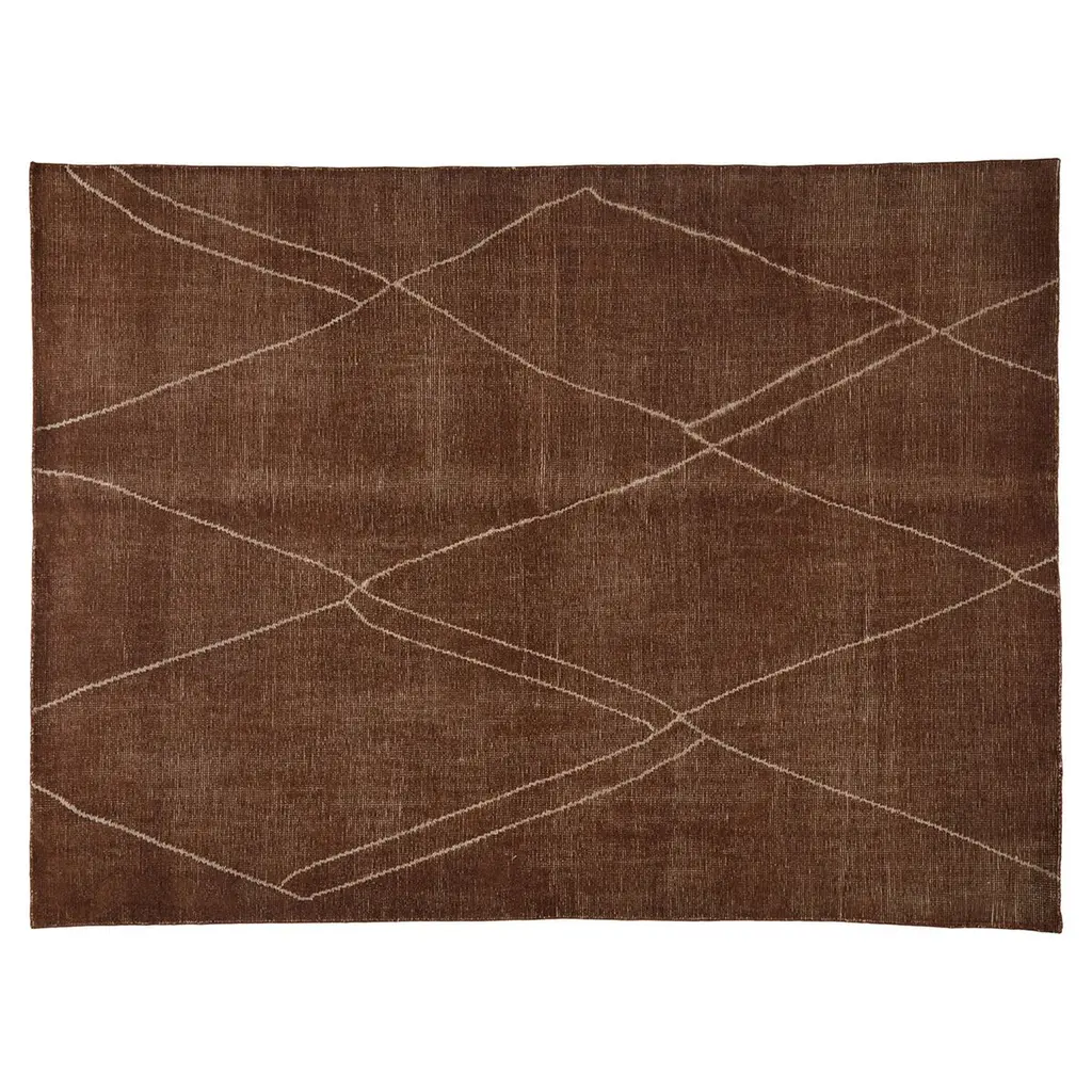 Expertly hand-woven from eco-friendly PET yarn, this rug gives a warm palette of brown with distinctive taupe lines, inspired by the markets of Marrakesh. Its high/low pile adds texture and dimension, while it's warm-color palette cozies up any setting. PET yarn is not only durable but also environmentally beneficial, repurposing plastic into beautiful, long-lasting rugs. For added comfort and durability, a rug pad is recommended. Each hand-woven rug's slight variations add to its unique quality.