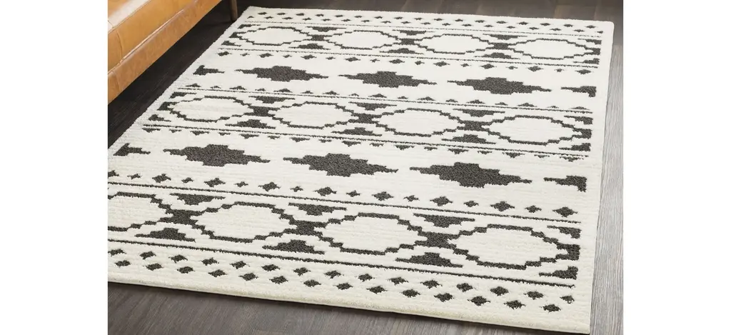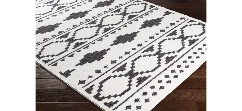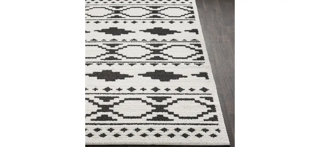 This Moroccan Shag area rug features striking global inspired designs that endure at the forefront of contemporary trends. The meticulously woven construction of these pieces boasts durability and will provide natural charm into your decor space. Made with polypropylene and polyester in Turkey, and has plush pile. Spot clean only.