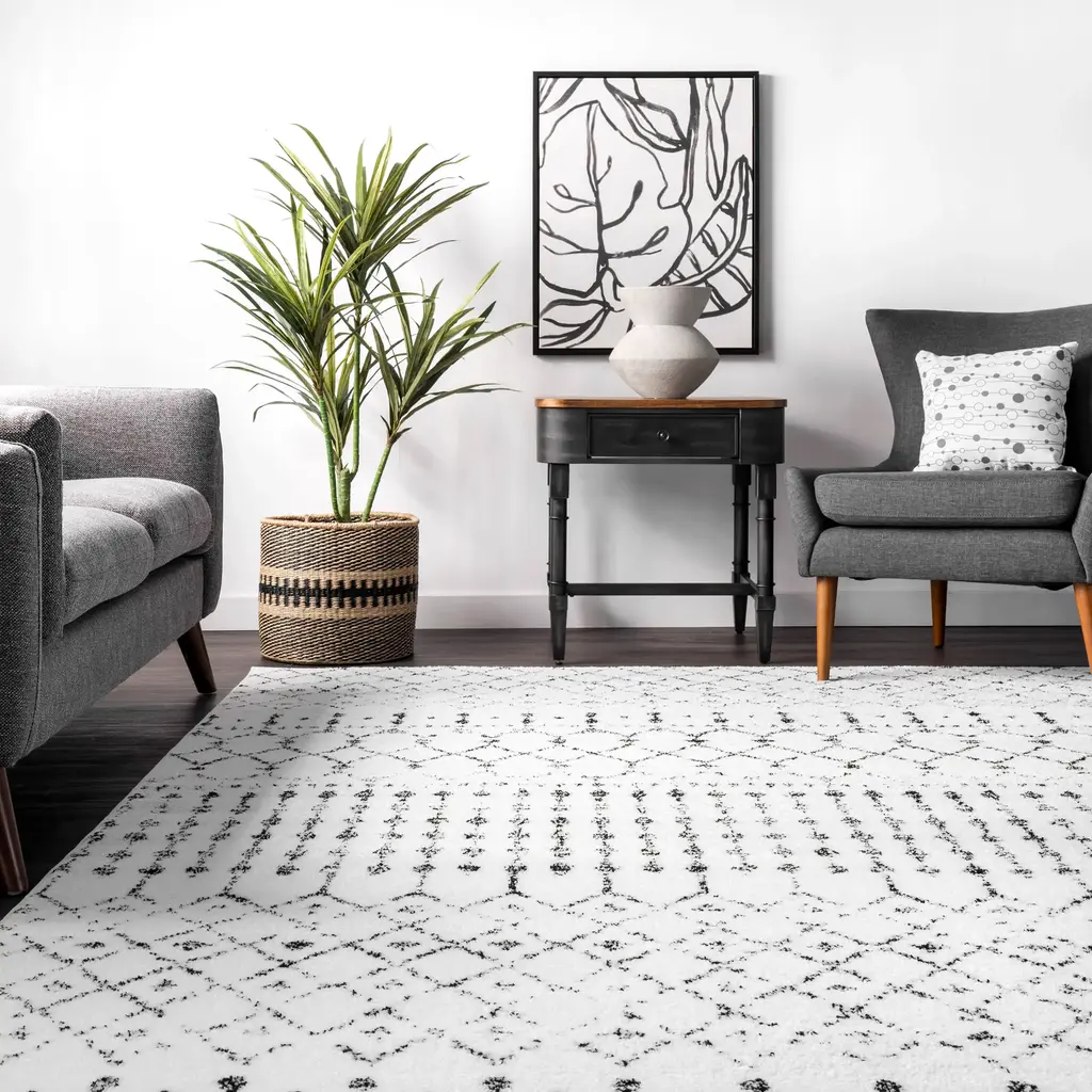 Moroccan Trellis Rug | White And Black - 2' 8" X 8'