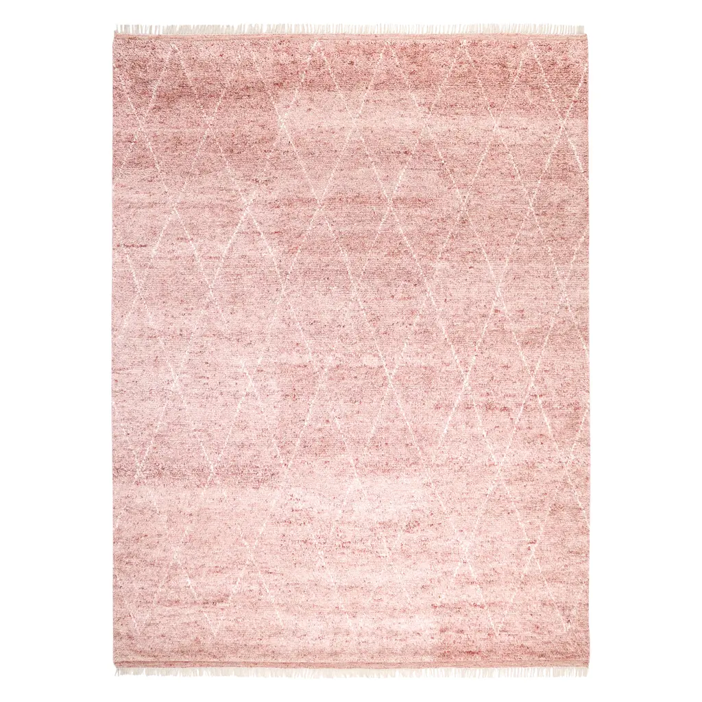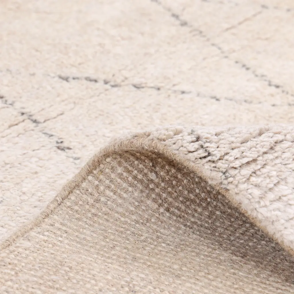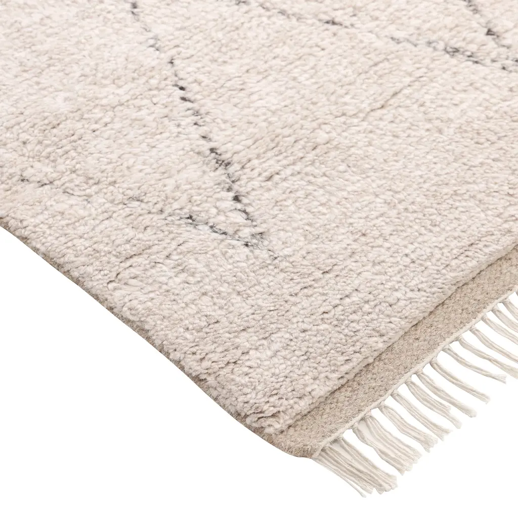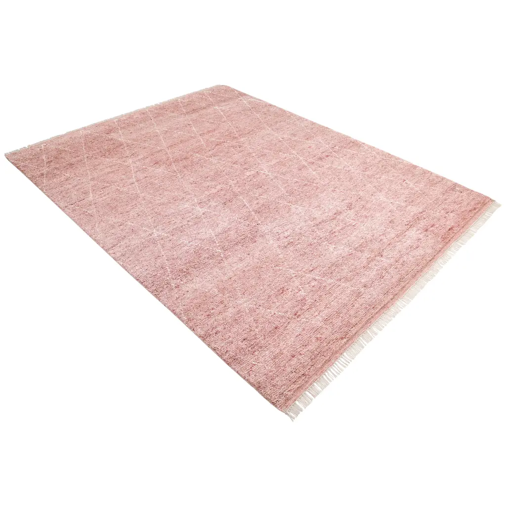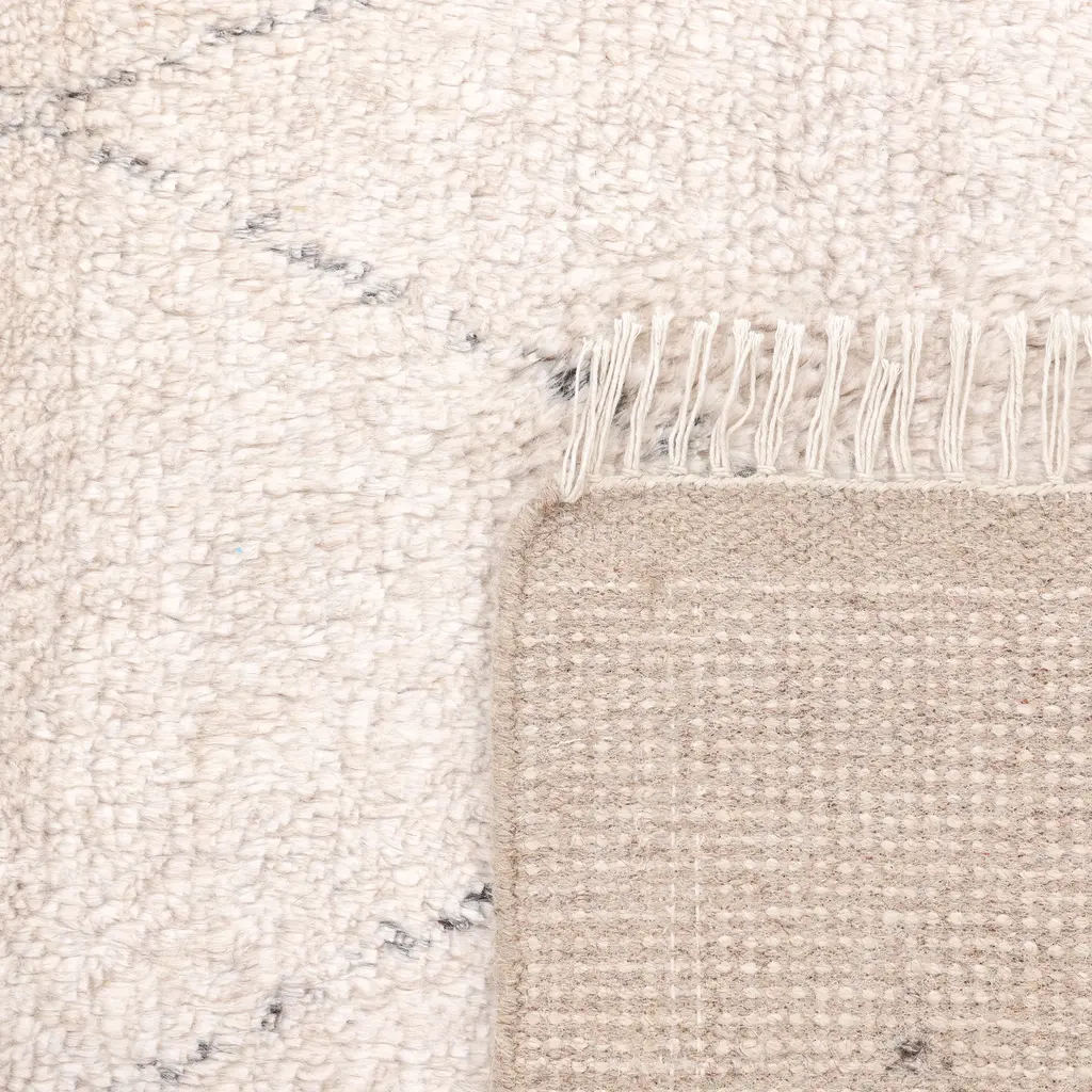 This 8' x 10' Moroccan-style area rug offers a blend of classic design and practical function. Crafted from 100% natural wool, this rug features a soft, dense pile that provides comfort and durability. The design showcases a repeating white geometric diamond pattern set against a contemporary grey background, complemented by subtle fringed edges. Constructed for lasting use, the wool material is known for its resilience and ability to withstand foot traffic, making it suitable for various spaces within the home. Its natural fibers also offer inherent insulation properties and are naturally flame resistant. The grey and white color palette provides a versatile foundation that can integrate with modern, minimalist, or eclectic decor styles. Ideal for anchoring a living room seating arrangement, defining a dining area, or adding warmth to a master bedroom, this 8' x 10' rug provides substantial coverage. Each rug is skillfully made in India, reflecting traditional craftsmanship adapted for contemporary interiors. To maintain its appearance, regular vacuuming is recommended, and professional cleaning should be considered for deeper maintenance.
