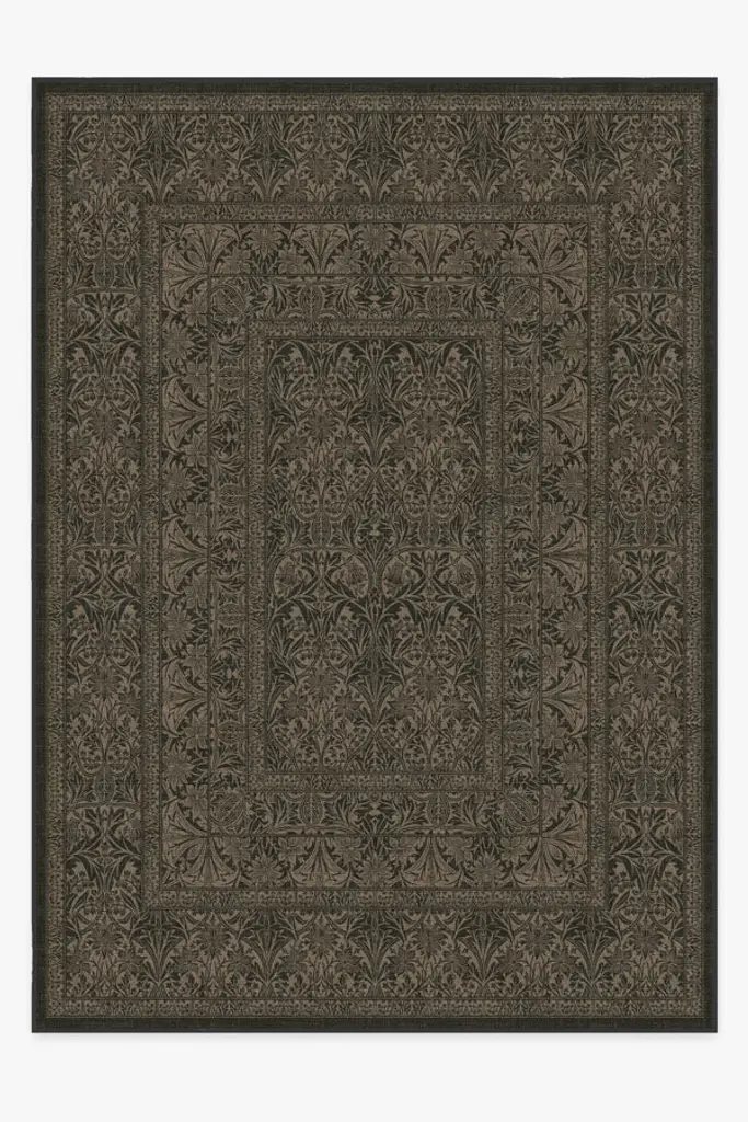 Set the scene with our Morris & Co. Bluebell Soft Black Rug. This exquisite rendition of William Morris's 1876 design layers motifs in concentric bands for an elaborate, ornate border. The detailed textures give a hand-made quality to the design and draw the viewer in for a closer look at the charming, yet ordinary, bluebell flowers. This two-tone colorway adds depth to any space with its fanciful layers of charcoal and taupe. Water-resistant, stain-resistant, and machine-washable. Rug colors may vary slightly according to your device and the lighting in your space.