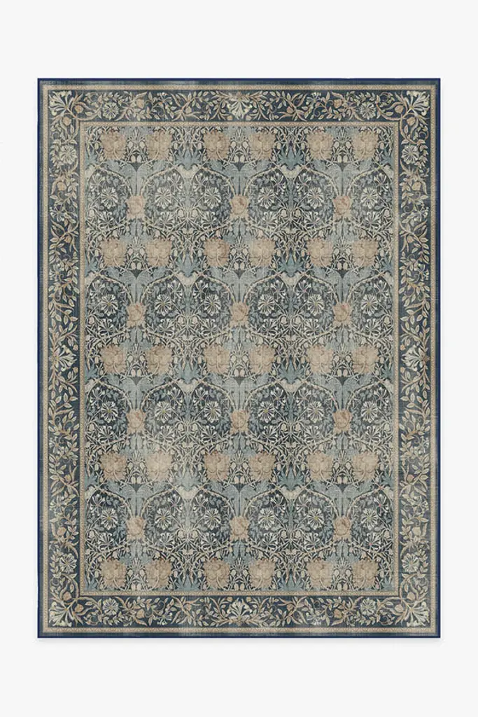 Step back in time with the Morris & Co. Honeysuckle & Tulip Indigo Rug. Originally inspired by William Morris's 1876 watercolor paintings of Honeysuckle, this mirrored pattern of elegant floral and foliage motifs stands the test of time. Fresh blues, subtle terracottas, and hopeful creams intertwine with ease, honoring the original design's sophistication and grandeur. Water-resistant, stain-resistant, and machine-washable. Rug colors may vary slightly according to your device and the lighting in your space.