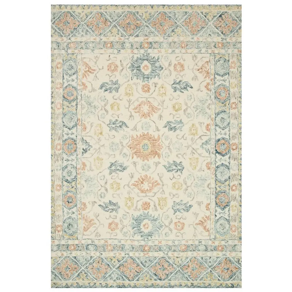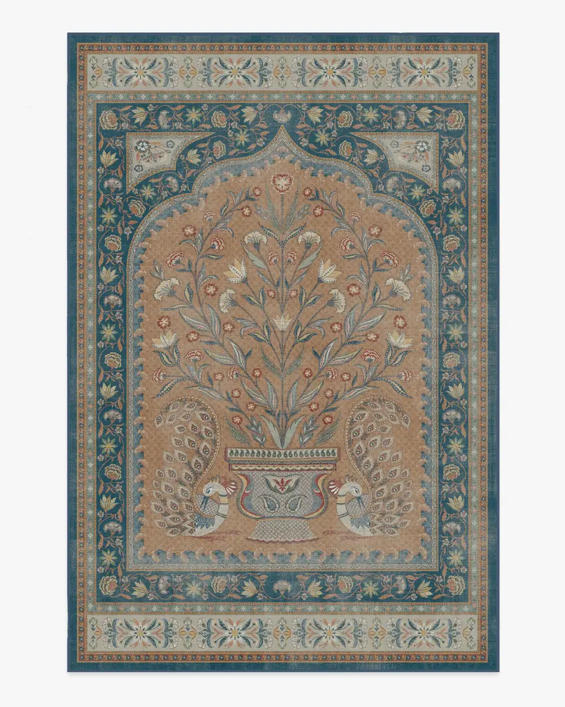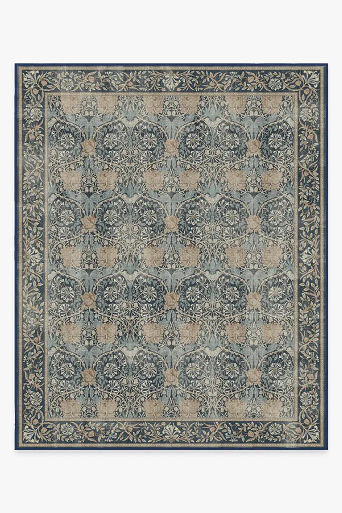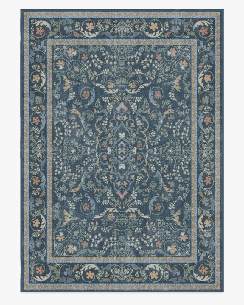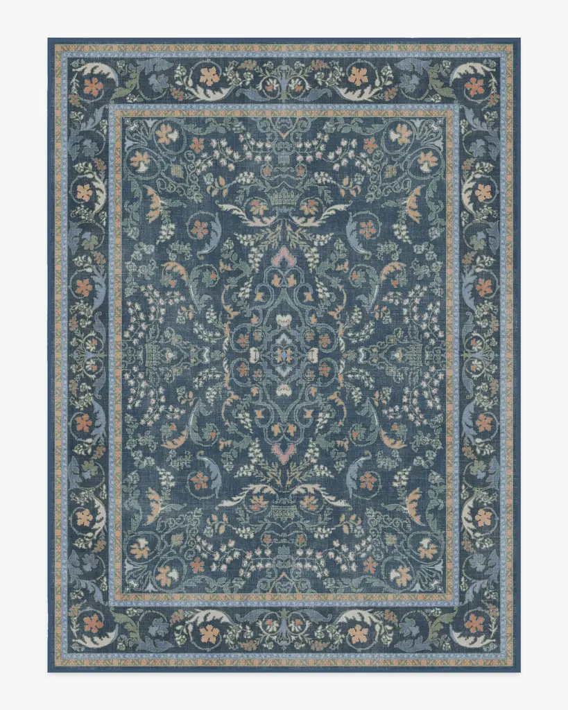 Enjoy life in full bloom with our Morris & Co. Lodden Soft Rose & Teal Rug. This fresh depiction of a classic William Morris design adds decadence to any room with its rich textures and golden hues. The intertwining florals expand from a central bloom, anchoring the composition in natural beauty. Teal blue and soft pink blooms layer on top of a classic cream background for an antique color palette. Water-resistant, stain-resistant, and machine-washable. Rug colors may vary slightly according to your device and the lighting in your space.
