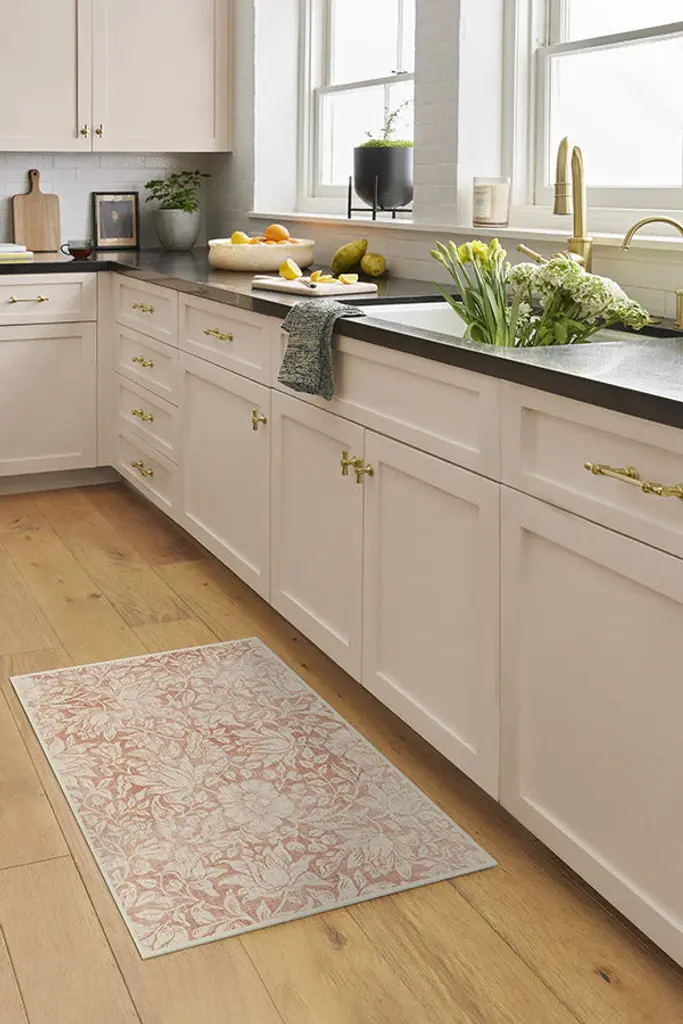 Invite joy in with the Morris & Co. Mallow Rust Rug. This timeless floral repeat pattern adds a touch of whimsical warmth to any room. A contemporary coloring of Kate Faulkner's 1879 design, this delicate pattern uses textured coral and soft cream to highlight the organic intricacies of the design. Water-resistant, stain-resistant, and machine-washable. Rug colors may vary slightly according to your device and the lighting in your space.