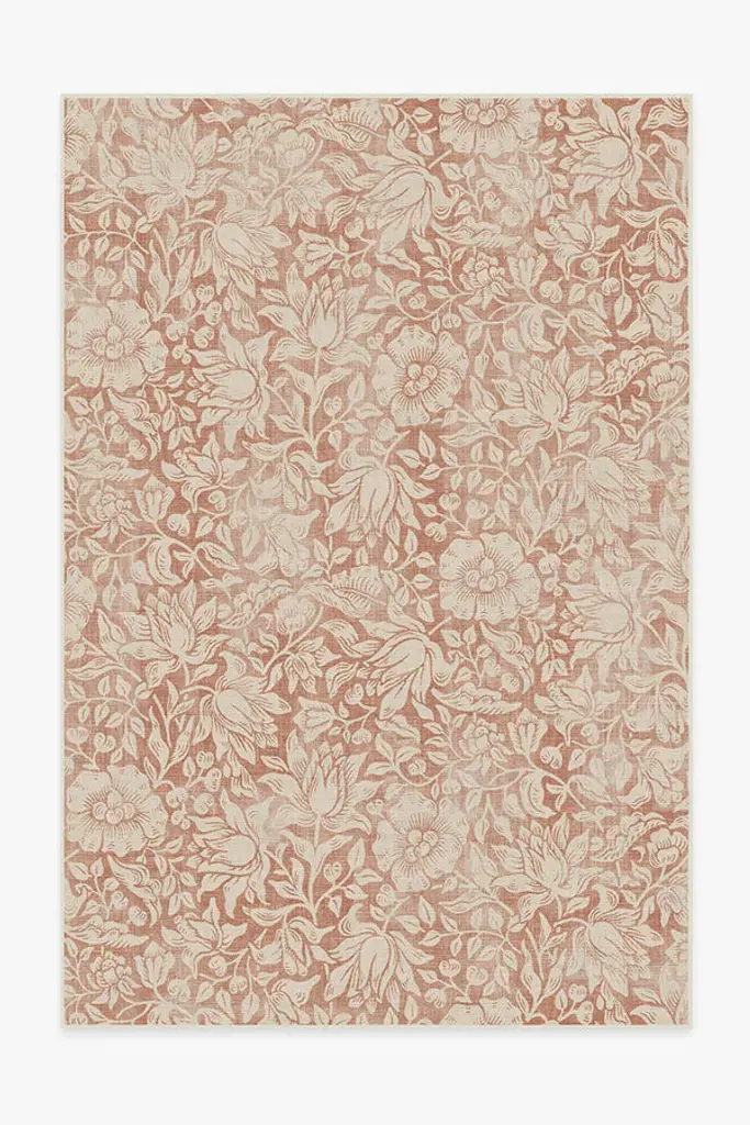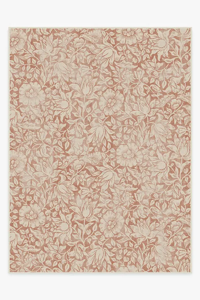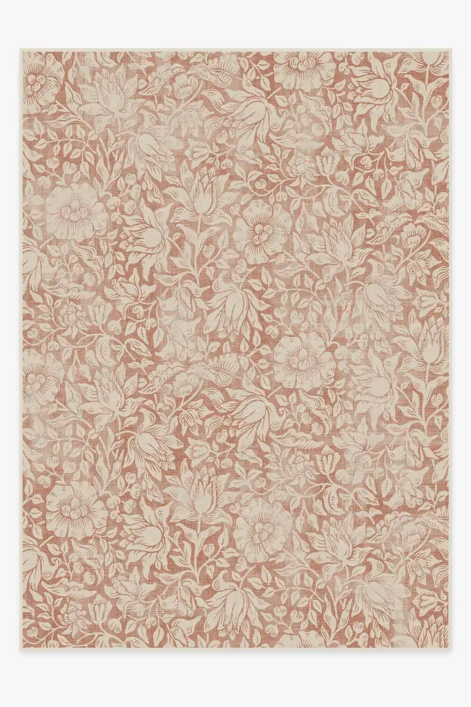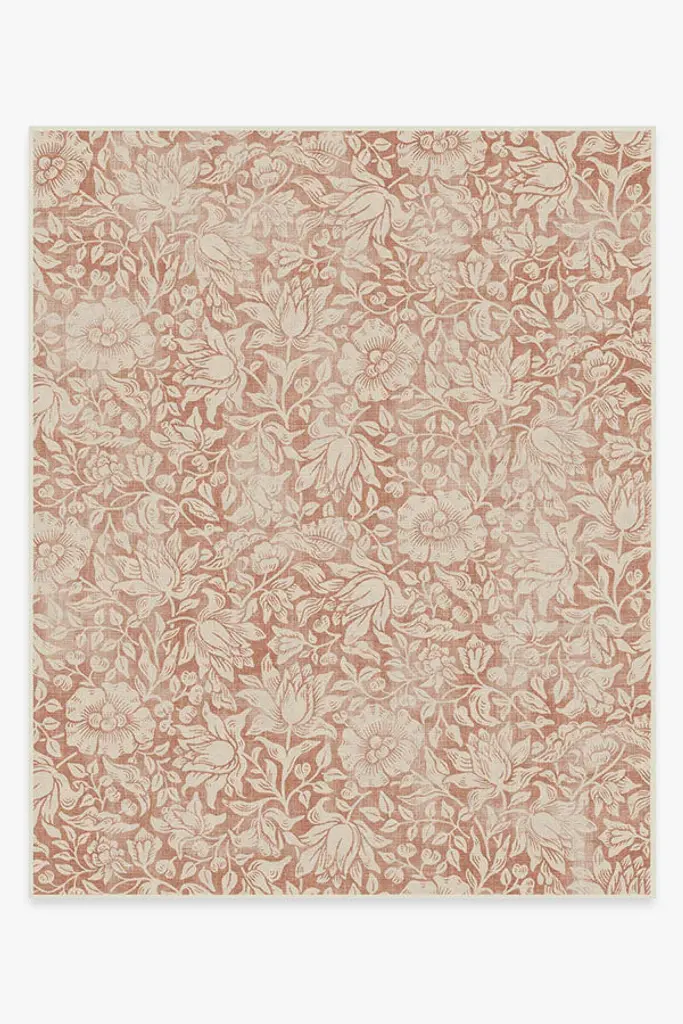 Invite joy in with the Morris & Co. Mallow Rust Rug. This timeless floral repeat pattern adds a touch of whimsical warmth to any room. A contemporary coloring of Kate Faulkner's 1879 design, this delicate pattern uses textured coral and soft cream to highlight the organic intricacies of the design. Water-resistant, stain-resistant, and machine-washable. Rug colors may vary slightly according to your device and the lighting in your space.