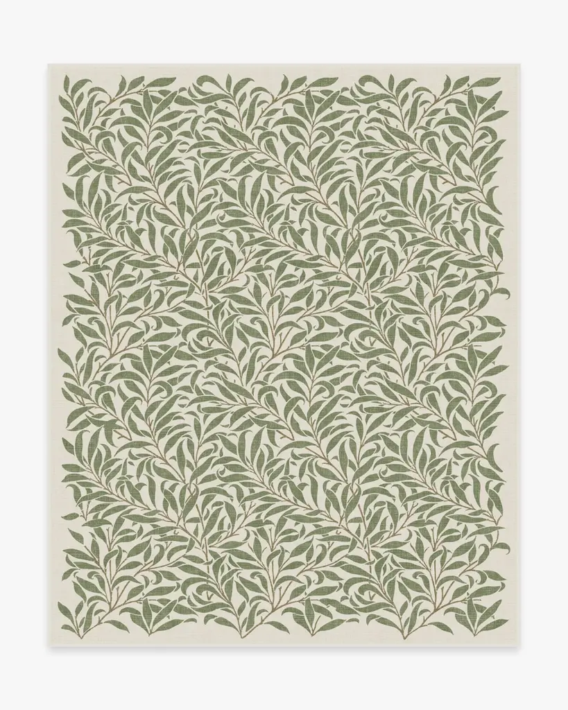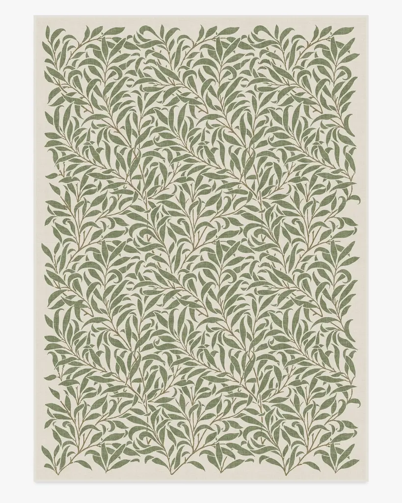 Lose yourself in the romantic intricacies of the Morris & Co. Pure Willow Boughs Green Rug. Based on one of William Morris's most recognizable designs, this rug touts a balanced composition of intertwining leaves and vines that brings simple sophistication to any space. The organic edge provides relief and draws the viewer into the natural eloquence of the olive and cream pattern. Water-resistant, stain-resistant, and machine-washable. Rug colors may vary slightly according to your device and the lighting in your space.