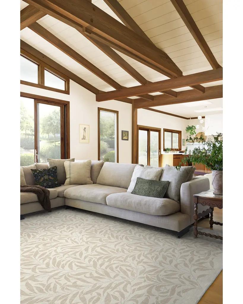 Lose yourself in the romantic intricacies of the Morris & Co. Pure Willow Boughs Natural Rug. Based on one of William Morris's most recognizable designs, this rug touts a balanced composition of intertwining leaves and vines that brings simple sophistication to any space. The organic edge provides relief and draws the viewer into the natural eloquence of the beige and cream pattern. Water-resistant, stain-resistant, and machine-washable. Rug colors may vary slightly according to your device and the lighting in your space.