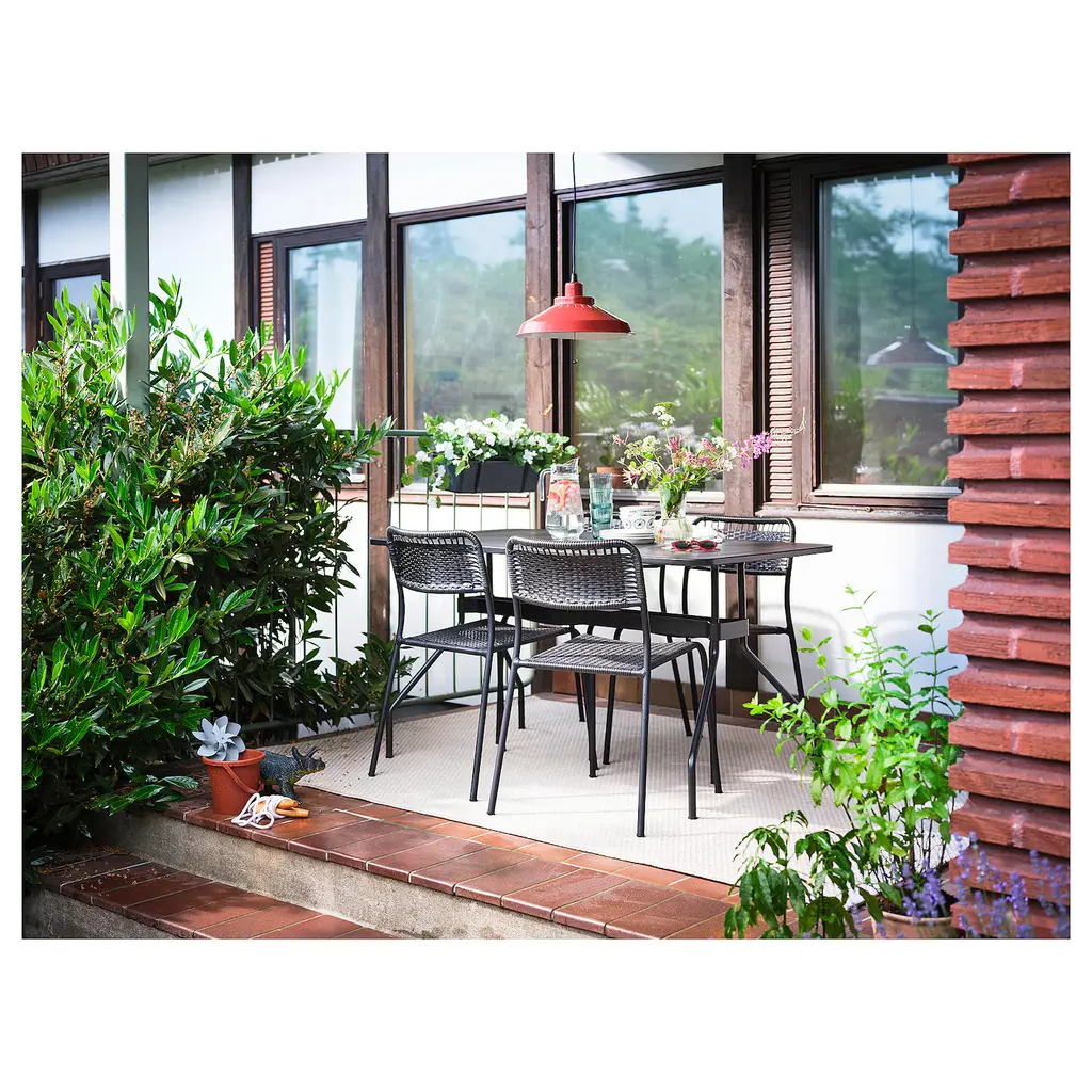 MORUM Rug flatwoven, in/outdoor - beige 5 ' 3 "x7 ' 7 ". Ideal in your living room or under your dining table since the flat-woven surface makes it easy to pull out the chairs and vacuum. Tested and approved for use outdoors in moderate to warm climate conditions with rain. The rug is machine-woven.