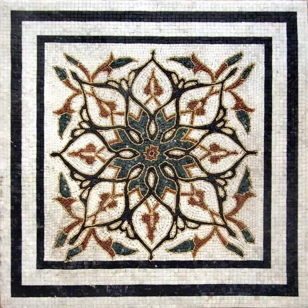 Mosaic Rug - Italian Floral Design - 80cm X 80cm (31" X 31") / Without Frame