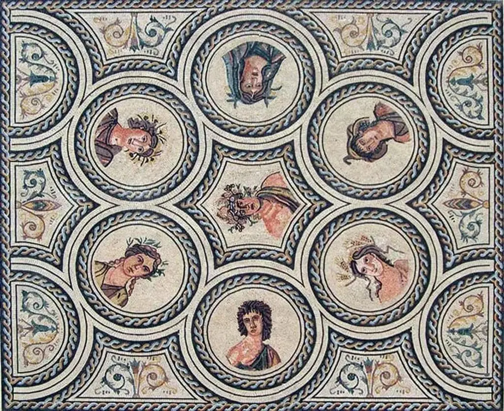 Mosaic Rug - Medallion Ancient Figures - 110cm X 180cm (43" X 71") / Without Frame