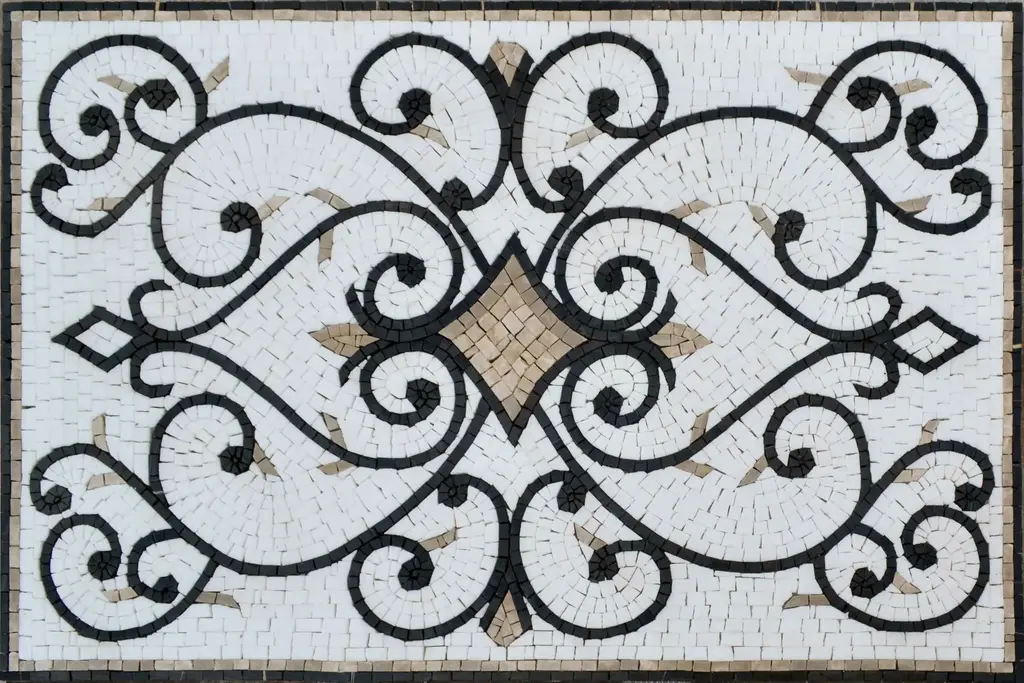 Introducing the Mosaic Rug - Uffizzi Styling, an exquisite piece that blends timeless beauty with artisanal craftsmanship. Elevate your space with this stunning handmade mosaic, meticulously created from all-natural marble, ensuring that each rug is a unique work of art. Step into a world of elegance and sophistication as the intricate filigree designs of this rug bring a touch of luxury to any room. The rich textures and soft hues provide a versatile aesthetic that will seamlessly enhance traditional and contemporary interiors alike, making it the perfect focal point for your living room, dining area, or even a serene bedroom retreat.Not only does the Mosaic Rug serve as a captivating decorative element, but its durable materials allow it to withstand the test of time, maintaining its beauty and charm for years to come. Whether you're walking barefoot on its polished surface or hosting a gathering of friends and family, this rug promises a comforting and elegant experience.The Uffizzi styling pays homage to the great art and architecture of the past, capturing the essence of luxury and sophistication in your home. Each piece combines artistry with functionality, making it not just a rug, but a statement of style and grace. Transform your living space into a gallery of beauty with the Mosaic Rug - Uffizzi Styling, where luxury meets artisanal excellence. Embrace the allure of natural marble and let this exceptional piece become the centerpiece of your decor.