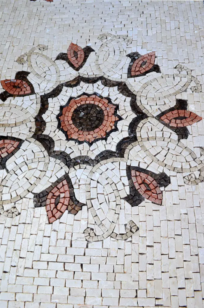 Introducing the exquisite Mosaic Rugs - Sheilah, an elegant addition to any home that beautifully combines timeless artistry with modern design. This stunning tile rug showcases a captivating floral motif, intricately crafted in a harmonious blend of ivory, sienna, and soft pastel hues. The result is a piece that not only enhances your decor but also serves as a conversation starter in any room.What sets the Mosaic Rug - Sheilah apart is its artisanal craftsmanship. Each tile is meticulously handcrafted using natural marble stones, ensuring that every rug is a unique work of art. The natural variations in the marble add depth and character, making this rug a truly one-of-a-kind piece that complements both contemporary and traditional interiors. Whether you are decorating a cozy living room, a sophisticated dining area, or a tranquil bedroom, this mosaic rug can be customized to fit your specific needs. Choose your desired size and transform your space with this personalized touch. The simplicity of the design combined with the rich, earthy tones allows the rug to blend seamlessly with your existing decor while still making a statement.Let the Mosaic Rugs - Sheilah redefine your flooring experience. Its easy maintenance and durable material ensure that you can enjoy its beauty for years to come. Elevate your home with this stunning tile rug and create a warm and inviting atmosphere that reflects your personal style. Embrace the elegance and charm of handcrafted artistry with the Mosaic Rug - Sheilah.