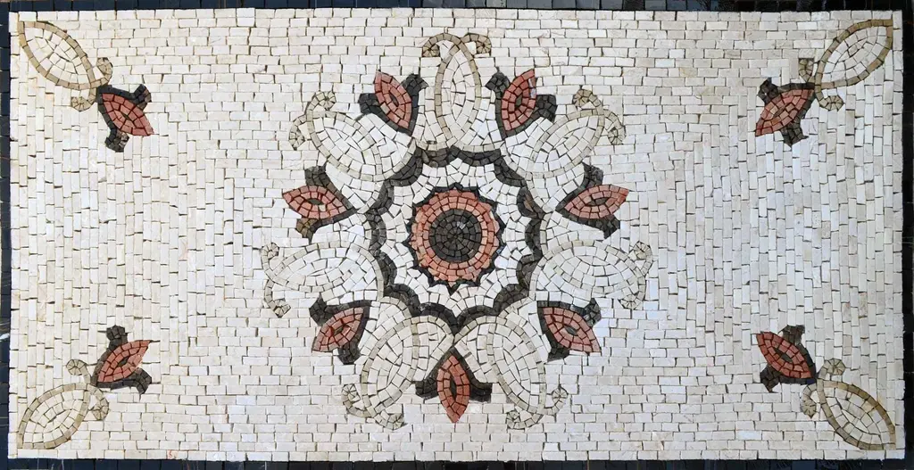 Introducing the exquisite Mosaic Rugs - Sheilah, an elegant addition to any home that beautifully combines timeless artistry with modern design. This stunning tile rug showcases a captivating floral motif, intricately crafted in a harmonious blend of ivory, sienna, and soft pastel hues. The result is a piece that not only enhances your decor but also serves as a conversation starter in any room.What sets the Mosaic Rug - Sheilah apart is its artisanal craftsmanship. Each tile is meticulously handcrafted using natural marble stones, ensuring that every rug is a unique work of art. The natural variations in the marble add depth and character, making this rug a truly one-of-a-kind piece that complements both contemporary and traditional interiors. Whether you are decorating a cozy living room, a sophisticated dining area, or a tranquil bedroom, this mosaic rug can be customized to fit your specific needs. Choose your desired size and transform your space with this personalized touch. The simplicity of the design combined with the rich, earthy tones allows the rug to blend seamlessly with your existing decor while still making a statement.Let the Mosaic Rugs - Sheilah redefine your flooring experience. Its easy maintenance and durable material ensure that you can enjoy its beauty for years to come. Elevate your home with this stunning tile rug and create a warm and inviting atmosphere that reflects your personal style. Embrace the elegance and charm of handcrafted artistry with the Mosaic Rug - Sheilah.