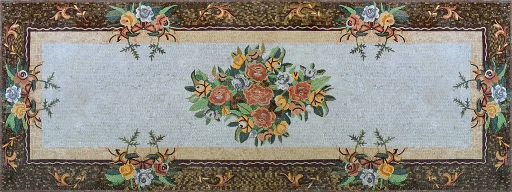 Mosaic Tile Rugs Floral Art - 260cm X 104cm (102" X 41") / Without Frame