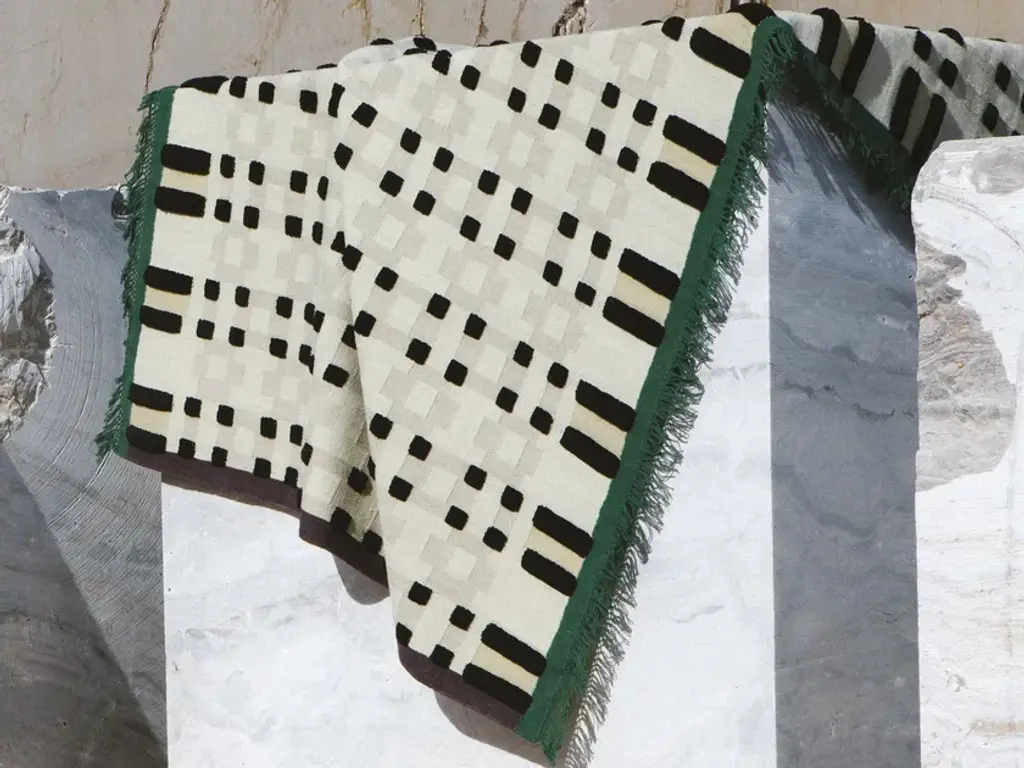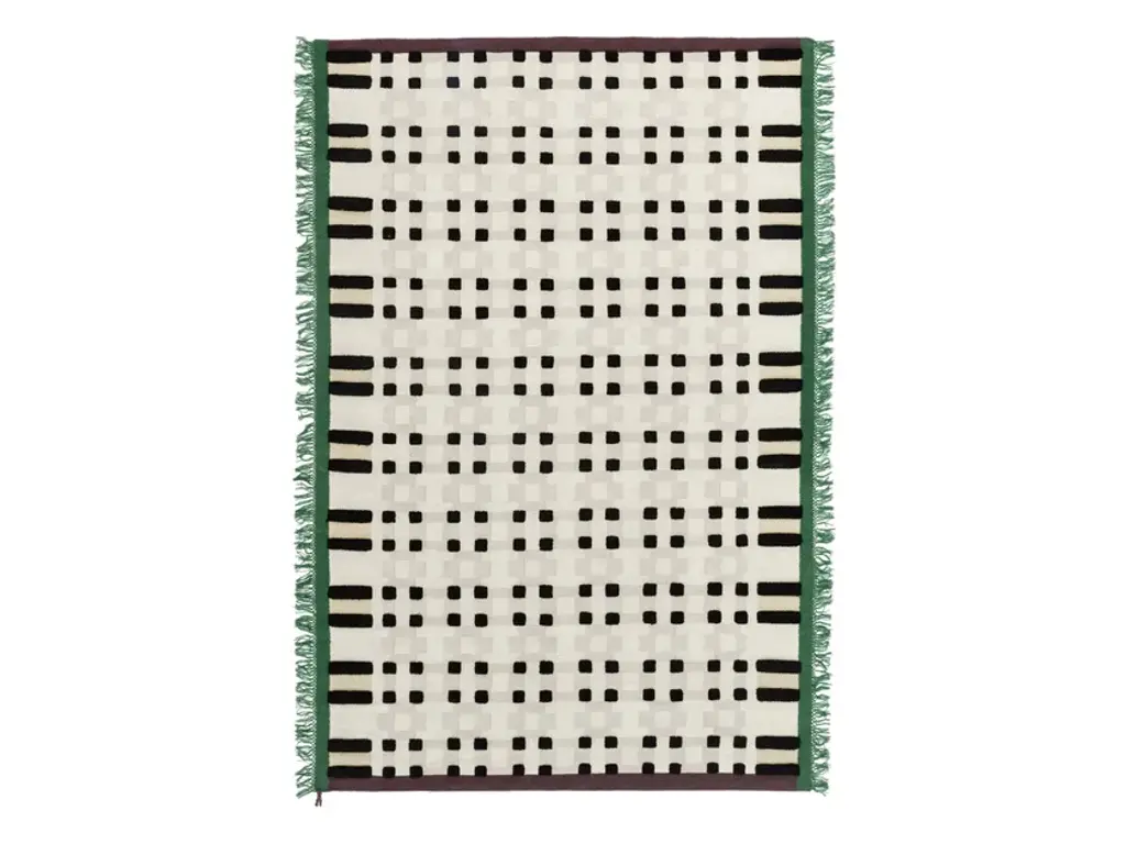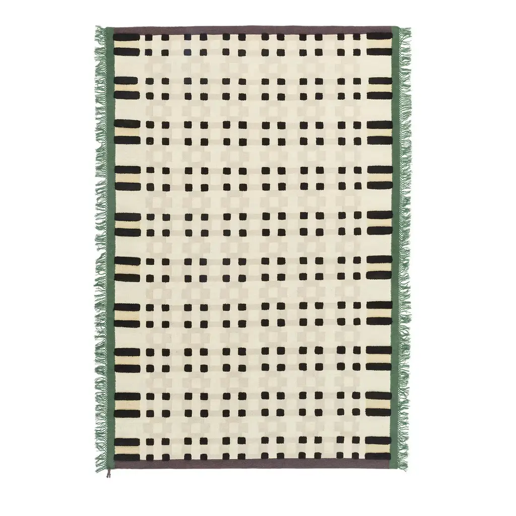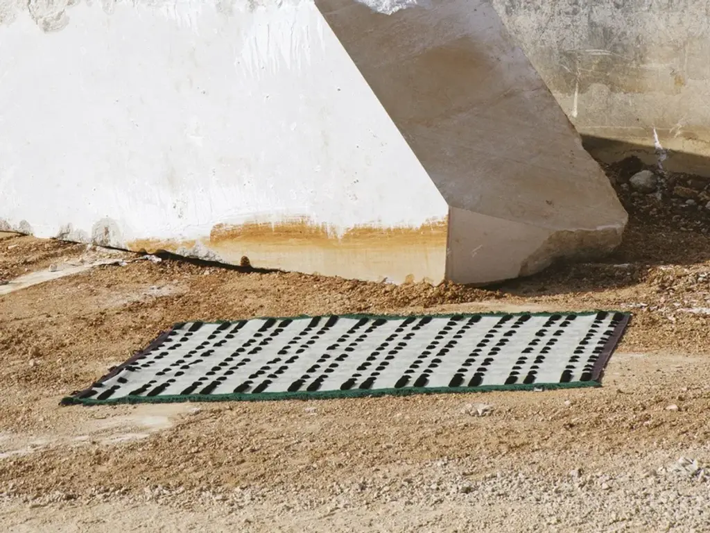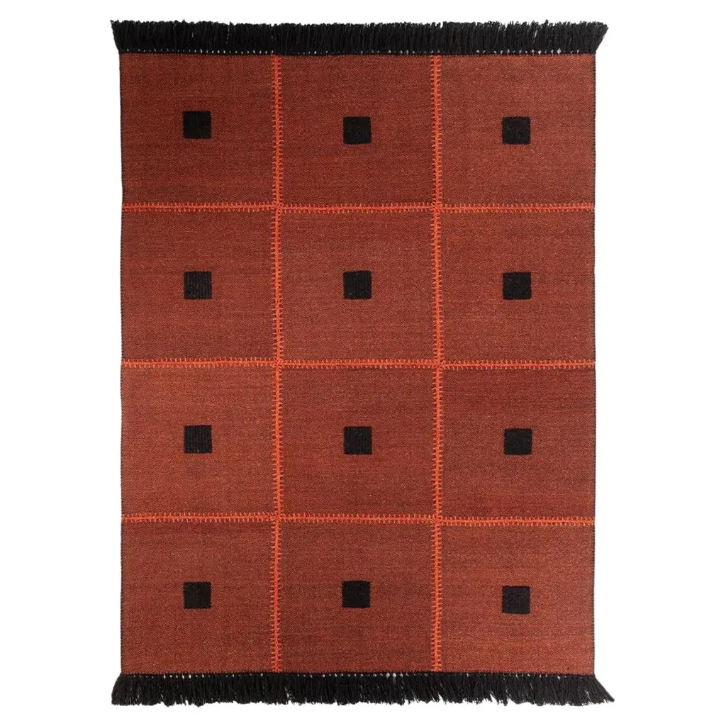 Mosaico is a hand-woven rug, 90% New Zealand wool and 10% cotton. Flat weft finish in wool with relief elements in cut pile wool. Customizable color and size. Not suitable for outdoor use.Reinterpreting the mosaic decorations, this rug represents the bridge between an ancient technique and a new aesthetic expression. The intertwining stripes of color draw a geometric and modern pattern. The side finish with alternating bands combined with the mosaic pattern gives an eclectic tone to the composition, making it vibrant and contemporary.Embossed flat-weave rugs are loom-woven like flatweaves and have virtually identical manufacturing characteristics, but additionally have embossed yarn elements In fact, the flat weaving incorporates three-dimensional elements, real "tufts" of fleece which, following a freer design than the weave of the weft, give the rug volume and personality.