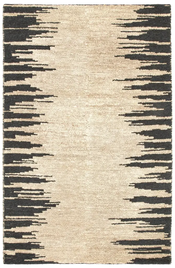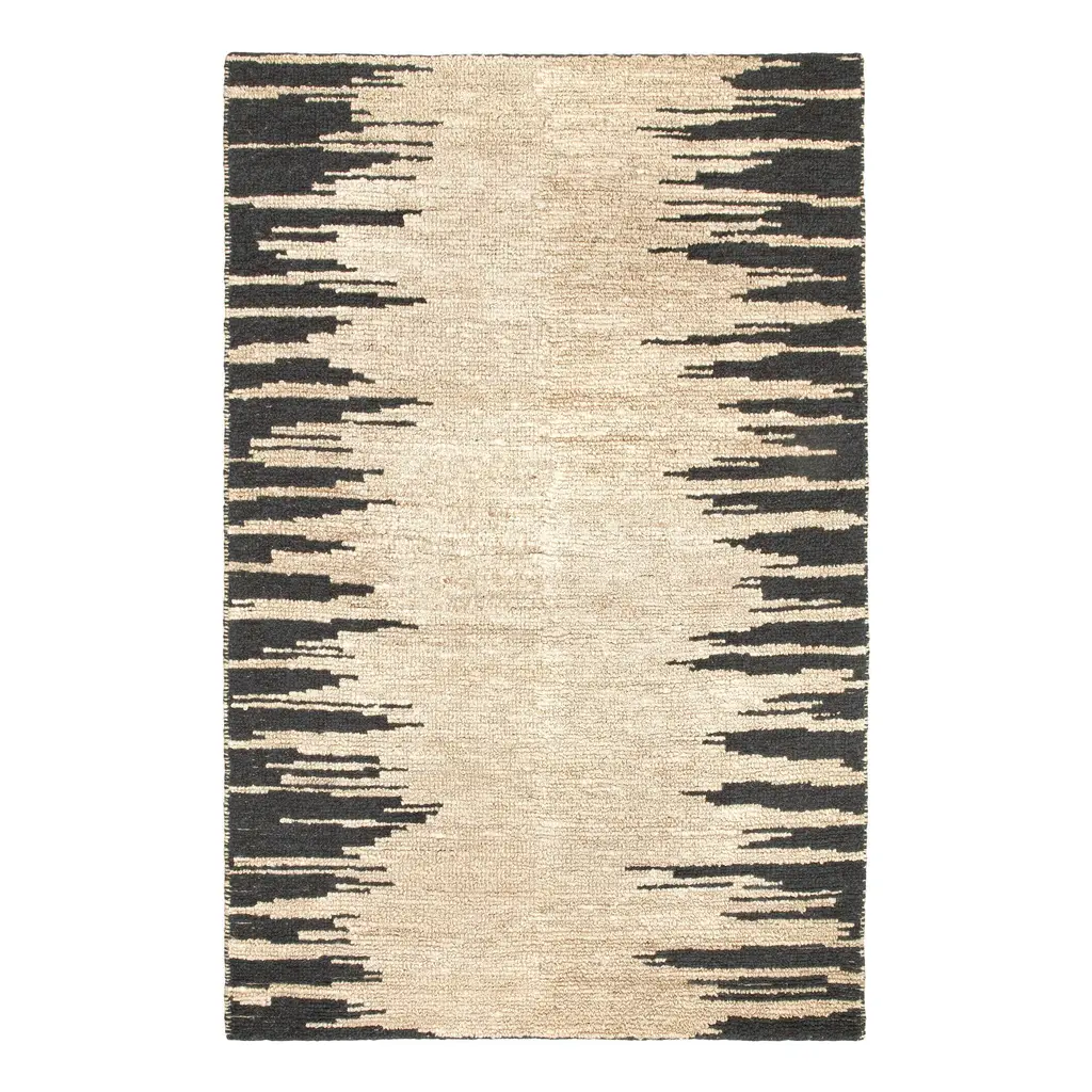 Enjoy the natural beauty of sustainable jute. The burly yarn, densely woven as stubby twisted loops, creates a uniquely random central panel contrasting in color and texture with soft wool borders in earthy mineral shades. Part of a collection designed by Marie Flanigan, the Founder and Principal of Marie Flanigan Interiors.