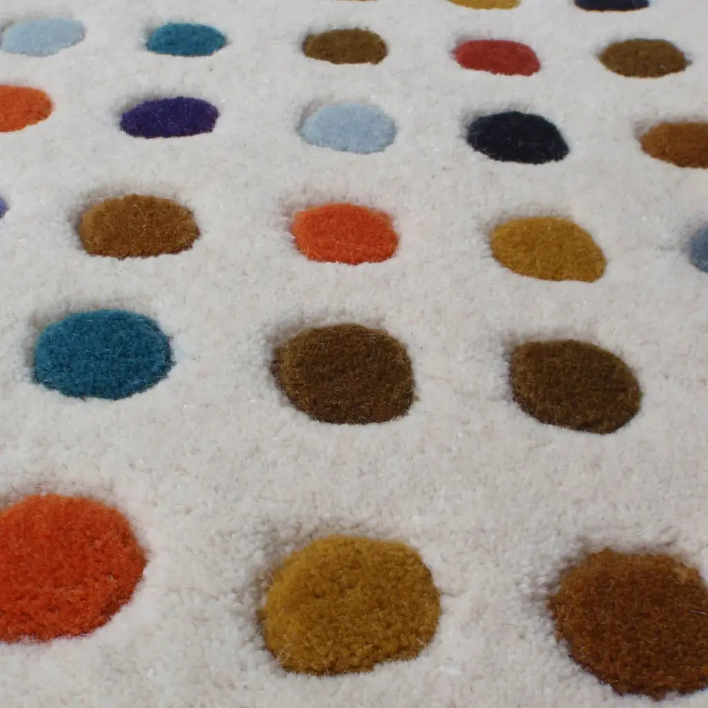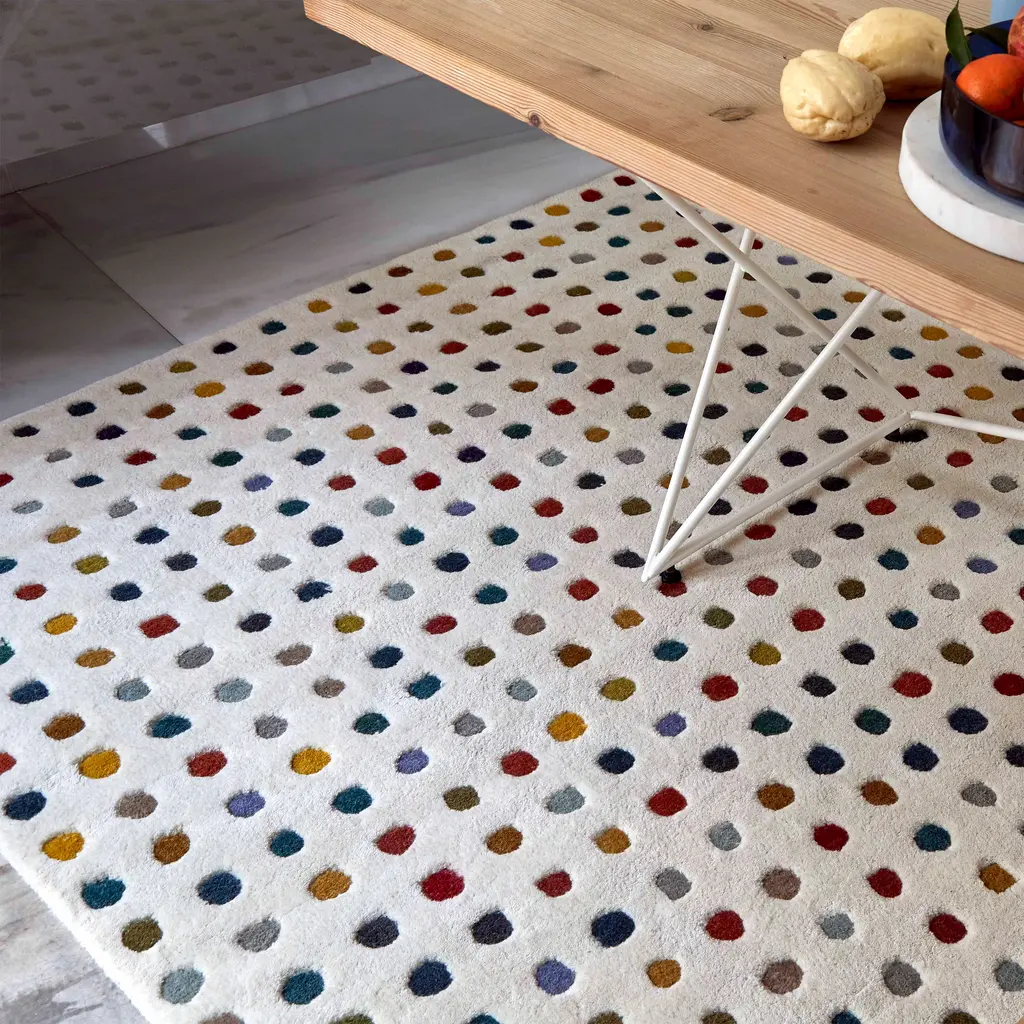 Colorful and eye-catching, the Mota 2 Wool Rug from Gan Rugs is ready to add a touch of textural appeal to your favorite interiors. Hand tufted from 100% wool with a cotton backing, the array of pretty polka dots are lined up in precise rows for a soft and cheerful anchor in a dining room, living room, or even a child's playroom.Highlights