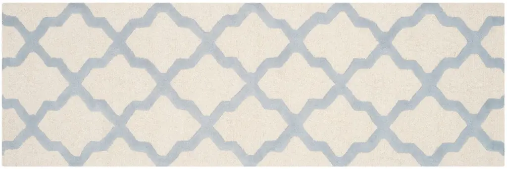 At home in a variety of decors, this wool rug features a Moroccan-inspired allover design in light blue on a neutral ivory field. We recommend a rug pad to extend the life of your rug and keep it securely in place.
