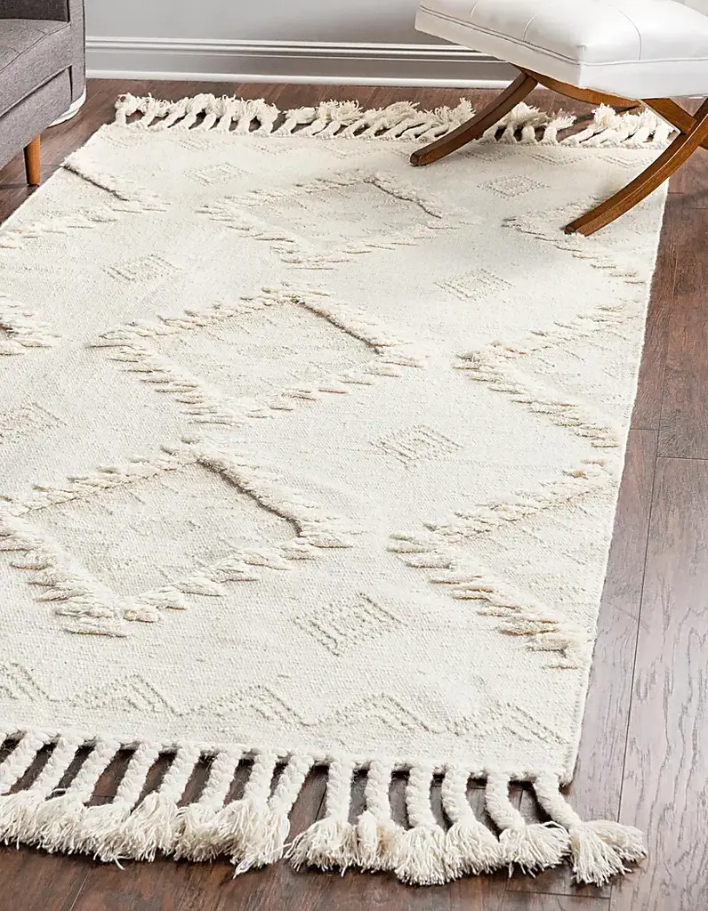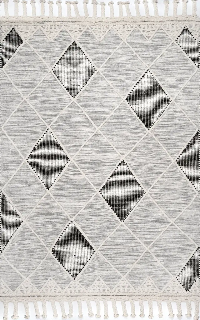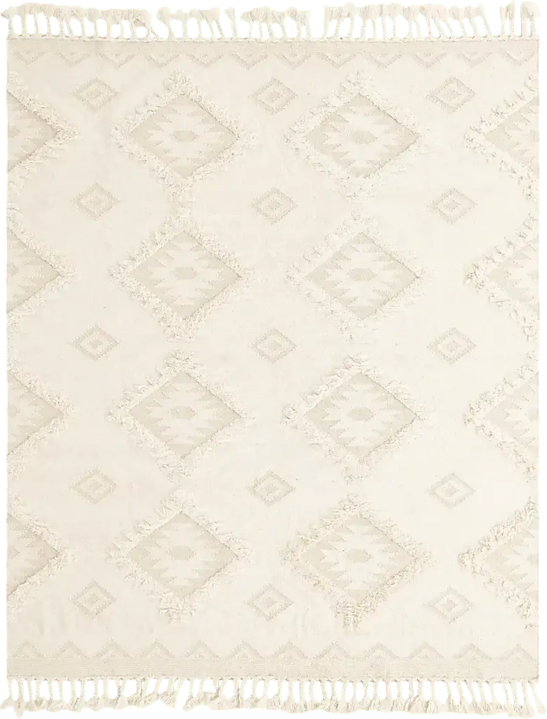 The geometric tribal pattern of the Mulde Collection brings an exciting southwestern flair to any room. The woven construction contrasts with raised areas and fringe for even more visual interest. The subdued color palettes and transitional design keep it from becoming too overbearing whether in a modern or traditional style room.