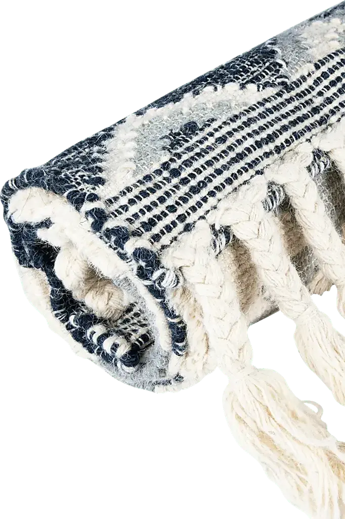 The geometric tribal pattern of the Mulde Collection brings an exciting southwestern flair to any room. The woven construction contrasts with raised areas and fringe for even more visual interest. The subdued color palettes and transitional design keep it from becoming too overbearing whether in a modern or traditional style room.