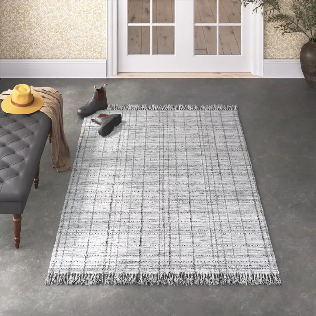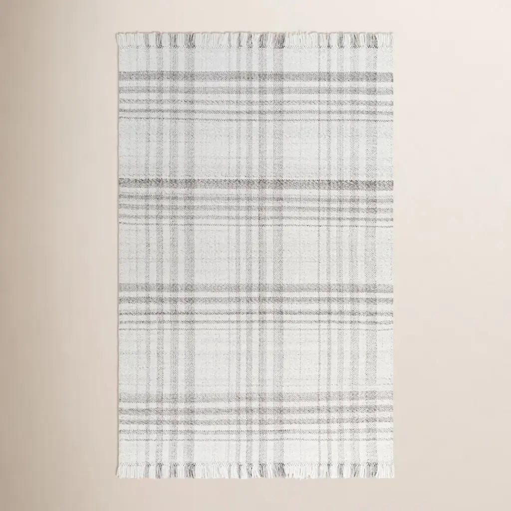 This handmade area rug has fringed edges and a plaid pattern that brings visual interest just about anywhere in your home, from the living room to the bedroom. It's hand-loomed from a high-quality wool blend that'll stand up to the occasional splash or spill. The low 0.01" pile is great for rolling out in high-traffic living rooms or entryways since it won't interrupt swinging doors. Although it comes with a thick backing, we recommend pairing it with a rug pad to prevent shifting and sliding underfoot.