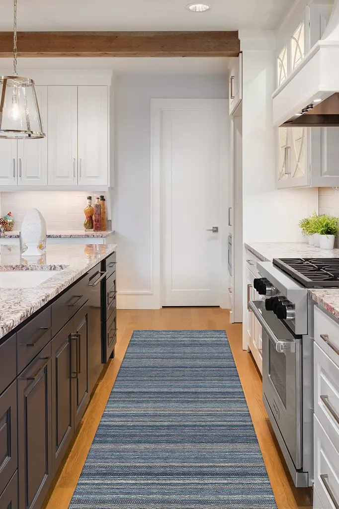 Our Multi Stripe Blue rug will bring out the relaxed and stylish vibes of your home. This contemporary, woven textured motif keenly blends a medley of blue, black and silver hues to create an indispensible element to your home's contemporary, classic or modern decor.