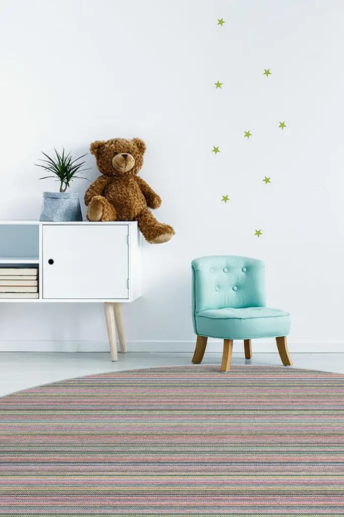 Our Multi Stripe Polychrome rug will daringly infuse a burst of color to your home decor. The contemporary, woven textured motif comes to life with a vibrant coloring of pearl, coconut, ocean blue, concord grape, fuchsia pink, tomato red, evergreen, seafoam blue and limoncello. This unique, decorative piece will bring a playful and fun accent to your contemporary, modern or eclectic furnishings.