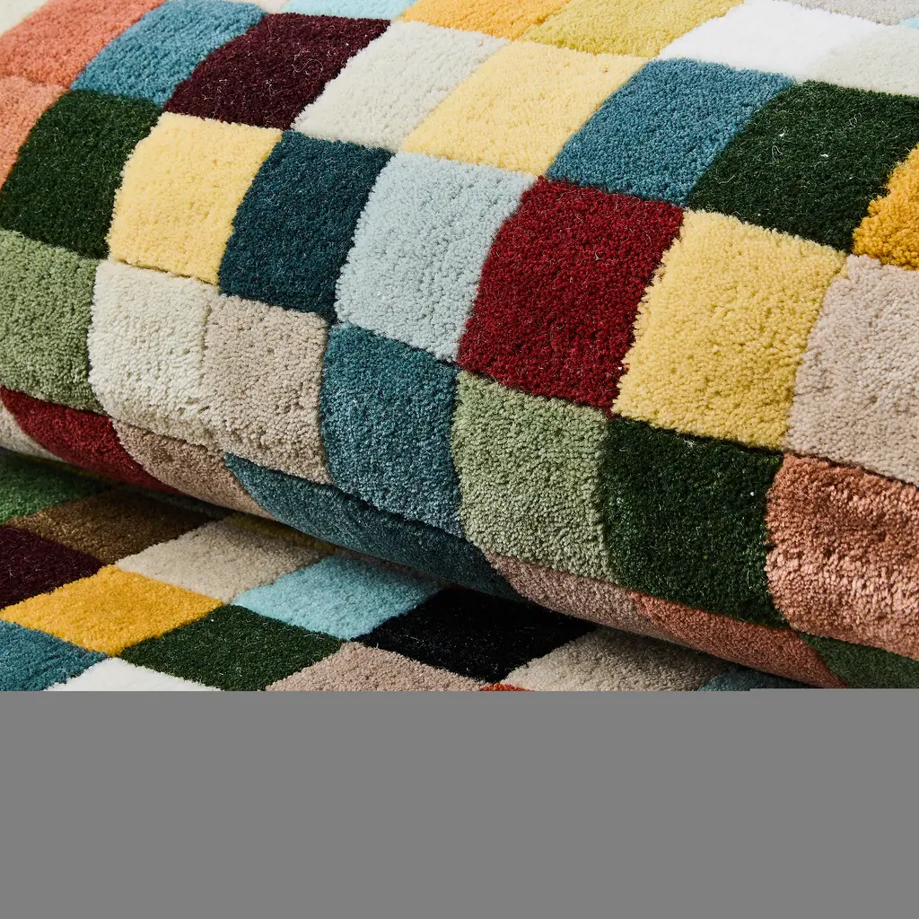 Ground your space with the dynamic pattern of the Multicolor Checkerboard 2'3" x 3'9" Rug, a statement-making foundation for any room. Crafted with a blend of New Zealand wool and viscose, it offers both durability and a soft, inviting texture with a vibrant interplay of colorful checks.