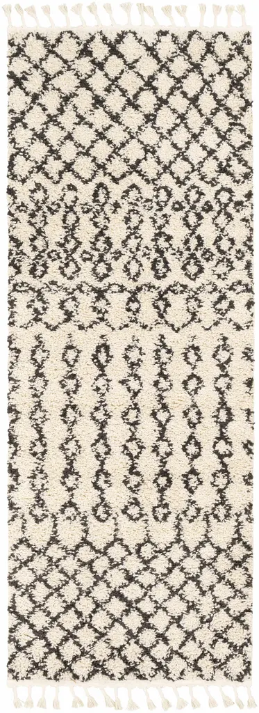Brand: Hauteloom Collection: Munich Colors: Charcoal, Beige Construction: Machine Woven Material: 100% Polypropylene Pile: Plush Pile Pile Height: 1.18" Styles: Bohemian/Global Made In: Turkey Thickness: 1.25" Fringe Length: 3.2" Price Range: $$$$$ (Most Affordable)